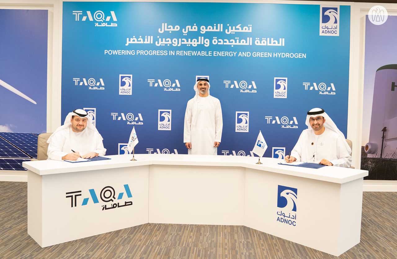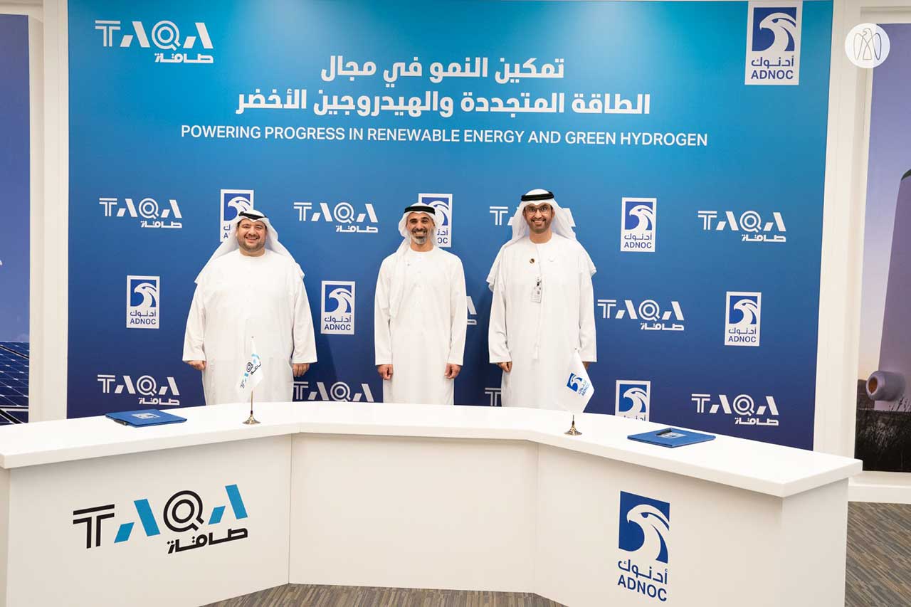 وبحضور سمو الشيخ خالد بن محمد بن زايد آل نهيّان، وقع على اتفاقية الشراكة كل من معالي الدكتور سلطان بن أحمد الجابر وزير الصناعة والتكنولوجيا المتقدمة العضو المنتدب والرئيس التنفيذي لشركة بترول أبوظبي الوطنية " أدنوك " ومجموعة شركاتها؛ وسعادة محمد حسن السويدي رئيس مجلس إدارة شركة أبوظبي الوطنية للطاقة "طاقة".