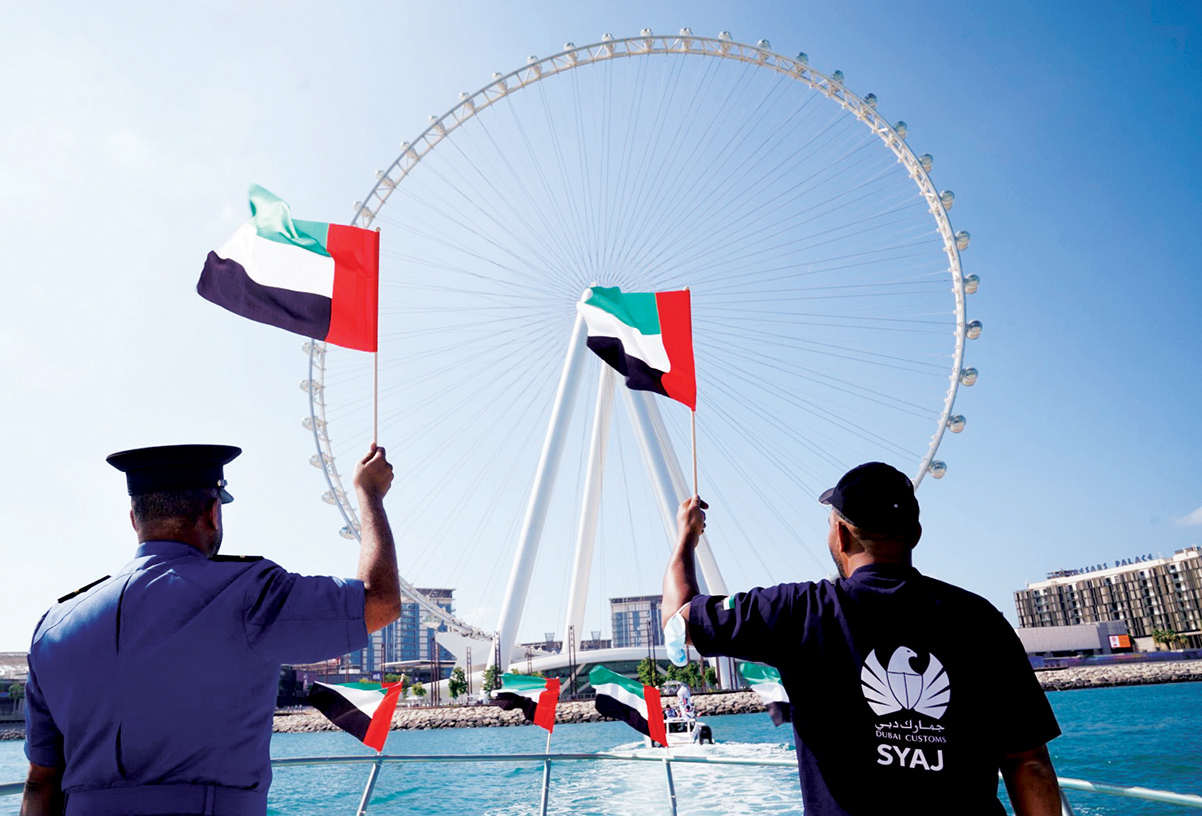 نظمت جمارك دبي مسيرة بحرية تحت شعار «إمارات الخمسين إنجازات نحو المئوية»، احتفاء بعيد الاتحاد الخمسين لدولة الإمارات العربية المتحدة، وقد جاء تنظيم المسيرة، بالتعاون مع نادي دبي الدولي للرياضات البحرية والقيادة العامة لشرطة دبي متمثلة بمركز شرطة الموانئ، حيث بدأت المسيرة من مقر نادي دبي الدولي للرياضات البحرية إلى دبي مارينا ذهاباً وإياباً، وبمشاركة 20 قارباً بحرياً، شارك في المسيرة محمد عبدالله حارب المدير التنفيذي لنادي دبي الدولي للرياضات البحرية، والمقدم علي عبدالله النقبي رئيس قسم الإنقاذ البحري في شرطة دبي، إلى جانب موظفي ومنتسبي نادي دبي الدولي للرياضات البحرية وموظفي جمارك دبي.