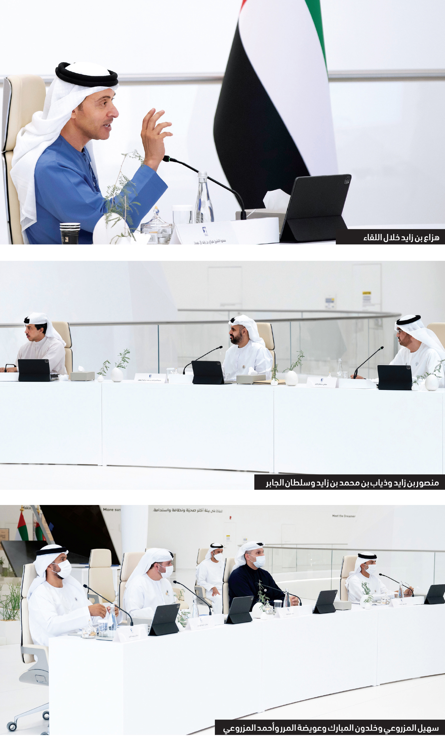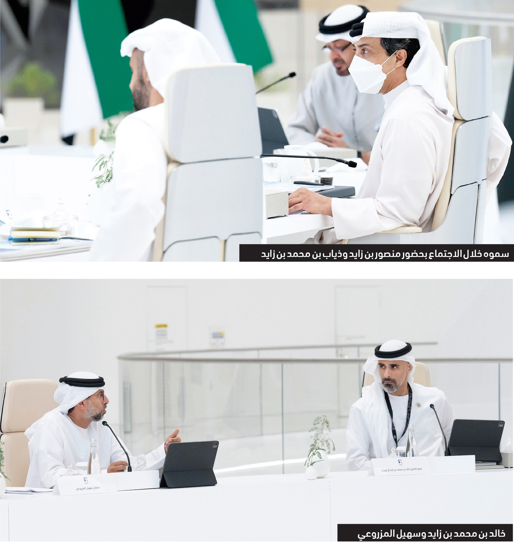 حضر الاجتماع، سمو الشيخ هزاع بن زايد آل نهيان، نائب رئيس المجلس التنفيذي لإمارة أبوظبي، وسمو الشيخ منصور بن زايد آل نهيان، نائب رئيس مجلس الوزراء، وزير شؤون الرئاسة، وسمو الشيخ خالد بن محمد بن زايد آل نهيان، عضو المجلس التنفيذي لإمارة أبوظبي، رئيس مكتب أبوظبي التنفيذي، وسمو الشيخ ذياب بن محمد بن زايد آل نهيان، رئيس ديوان ولي عهد أبوظبي، ومعالي سهيل بن محمد فرج فارس المزروعي، وزير الطاقة والبنية التحتية، ومعالي الدكتور سلطان بن أحمد الجابر، وزير الصناعة والتكنولوجيا المتقدمة، العضو المنتدب والرئيس التنفيذي لـ«أدنوك» ومجموعة شركاتها، ومعالي أحمد علي الصايغ، وزير دولة، والدكتور أحمد مبارك المزروعي، عضو المجلس التنفيذي، رئيس مكتب رئيس المجلس التنفيذي لإمارة أبوظبي، وخلدون خليفة المبارك، العضو المنتدب، الرئيس التنفيذي لشركة «مبادلة» للاستثمار، وجاسم محمد بوعتابة الزعابي، عضو المجلس التنفيذي، رئيس دائرة المالية في أبوظبي، وعويضة مرشد المرر، عضو المجلس التنفيذي، رئيس دائرة الطاقة في أبوظبي.