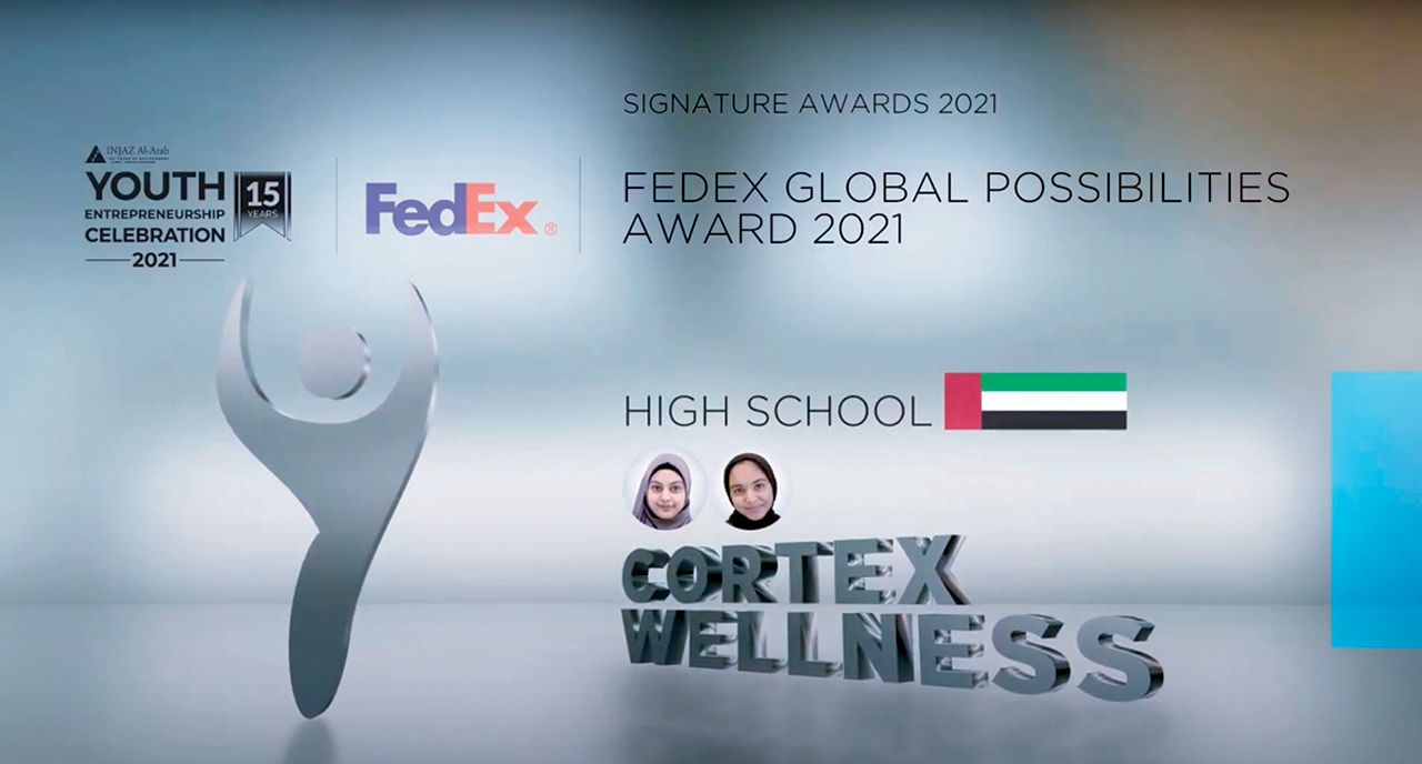 وفازت بجائزة فيديكس للتمكين العالمي شركة CorteX Wellness، التي تقودها مجموعة من طلاب المدارس الثانوية من الإمارات العربية المتحدة.