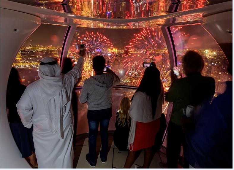 استضافت عين دبي، أعلى وأضخم عجلة مشاهدة في العالم، مجموعة من الحفلات والتجارب الفريدة والفعاليات الترفيهية المميزة، بالإضافة إلى العروض الضوئية والألعاب النارية وعروض الدرون قبل انطلاق العد العكسي الرسمي لبداية العام الجديد من أوميغا وريفولي، لتؤكد مكانتها كوجهة مثالية للاحتفالات والمرح.