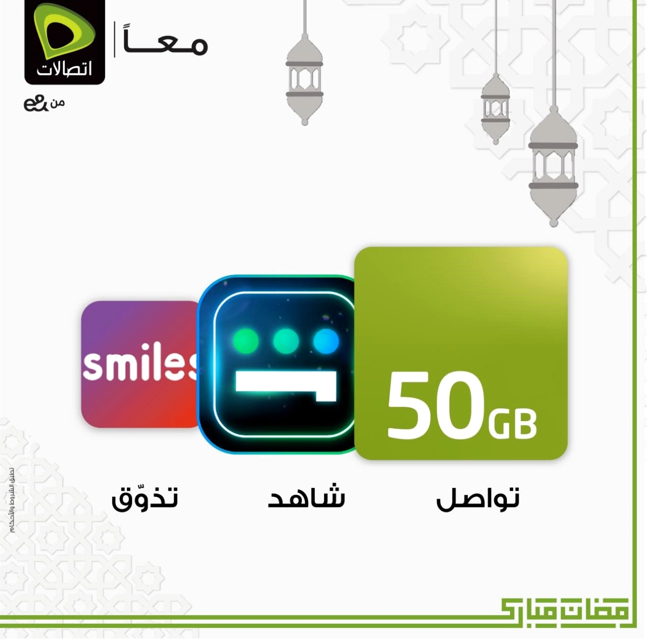 وتتضمن عروض رمضان للخطوط المدفوعة مقدماً وخطوط الدفع الآجل رصيد البيانات والاشتراك في المحتوى الترفيهي والتوصيل المجاني لطلبات الطعام، وهي مصممّة خصيصاً لتلبية مختلف الاحتياجات الرقمية للمشتركين خلال شهر رمضان. ومقابل 100 درهم يمكن لمشتركي خطوط الدفع الآجل الحصول على رصيد 50 جيجابايت من البيانات.