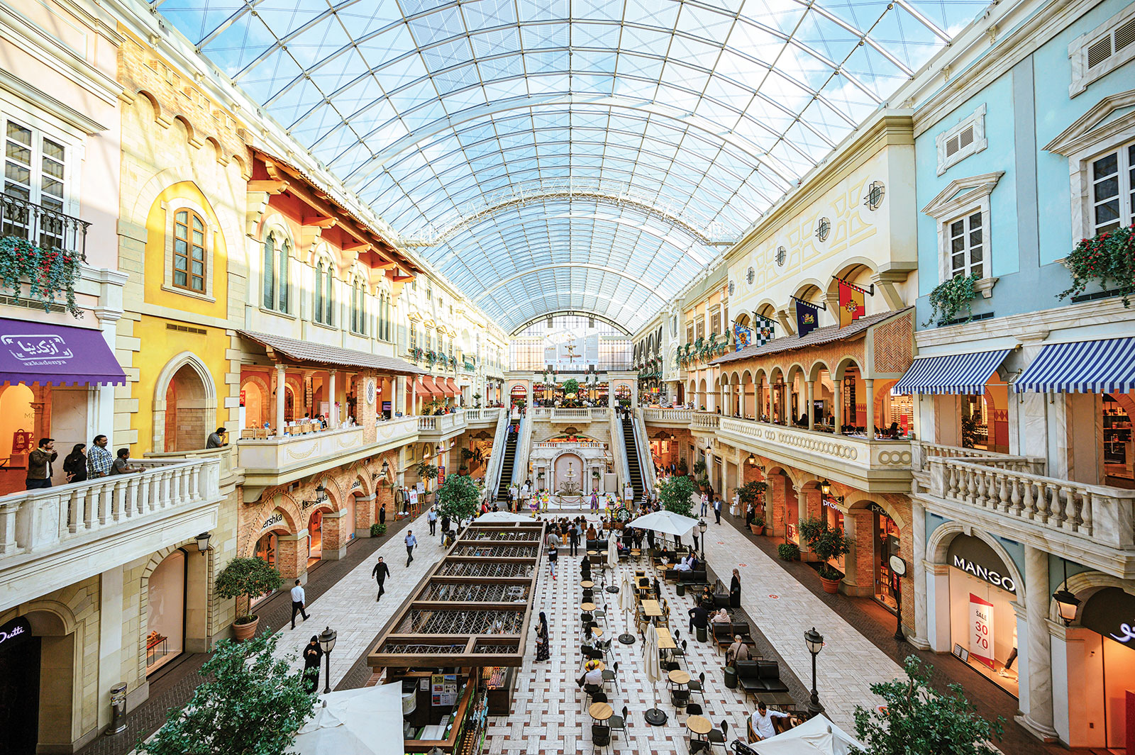 المتاجر: من 10 صباحاً حتى 11 مساءً (من الأحد حتى الخميس)، ومن 10 صباحاً حتى 12 منتصف الليل (من الجمعة حتى السبت).