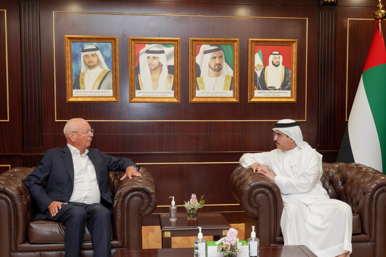 استقبل معالي سعيد محمد الطاير، العضو المنتدب الرئيس التنفيذي لهيئة كهرباء ومياه دبي، البروفيسور كلاوس شواب، المؤسس والرئيس التنفيذي للمنتدى الاقتصادي العالمي، الذي وجه الدعوة لمعاليه لحضور المنتدى الاقتصاد العالمي الذي ستنظّم فعالياته حضورياً في دافوس، سويسرا من 22 إلى 26 مايو 2022.