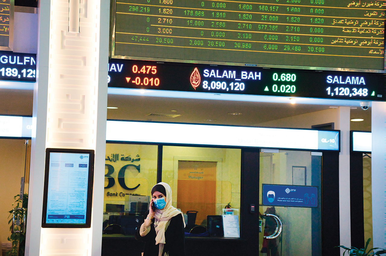 وارتفع مؤشر سوق أبوظبي إلى 9888 نقطة وفي قطاع العقار صعد «الدار» 5% و«رأس الخيمة العقارية» 1%. وفي القطاع المالي والبنوك نزل سهم «العالمية القابضة» 0.07%، بينما صعد «أبوظبي الأول» 4.5% و«أبوظبي التجاري» 4.6% و«أبوظبي الإسلامي» 2.3% وفي قطاع الطاقة صعد سهم «أدنوك للتوزيع» 1.5% و«دانة للغاز» 1.8%، و«أدنوك للحفر» 4% وفي قطاع الاتصالات صعد سهم «اتصالات» 2% واستقر «ياه سات» عند إغلاقه السابق.