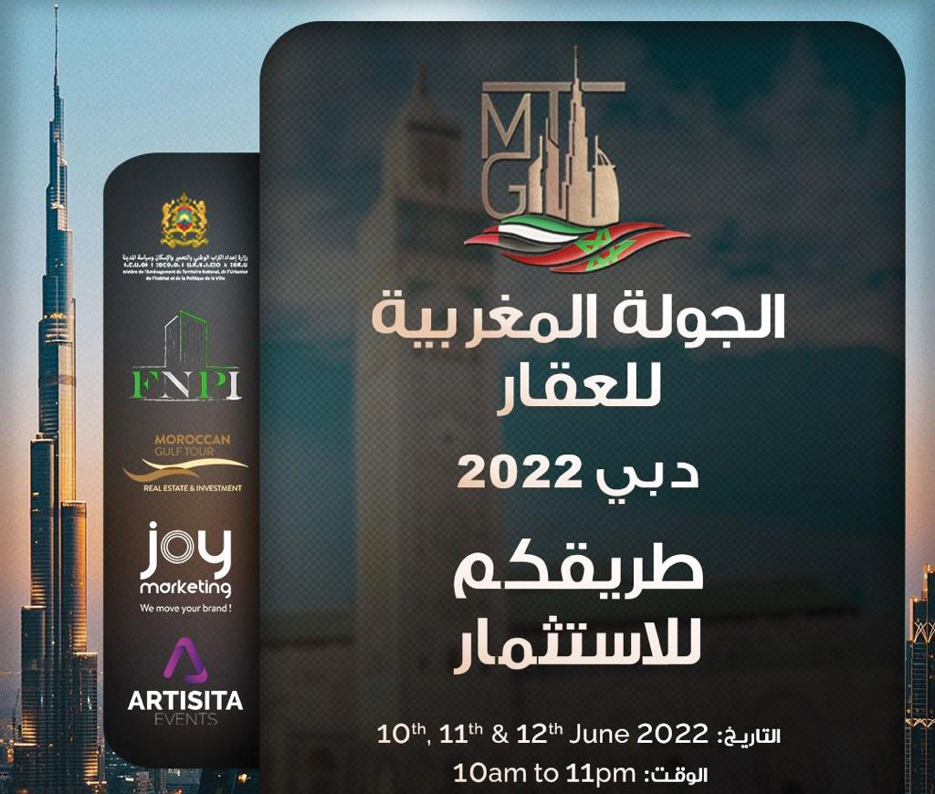 تستضيف دبي الجولة المغربية للعقار والاستثمار بدول الخليج بدورتها الأولى في 10 يونيو بفندق هيلتون الحبتور. وتتضمن الجولة معرضاً مغربياً للعقار يستهدف من يرغبون في اقتناء عقارات بالمغرب، بالإضافة إلى مؤتمرات حول الاستثمار بالمغرب ولقاءات تجمع أصحاب المشاريع ومستثمرين مغاربة ومن جنسيات مختلفة.