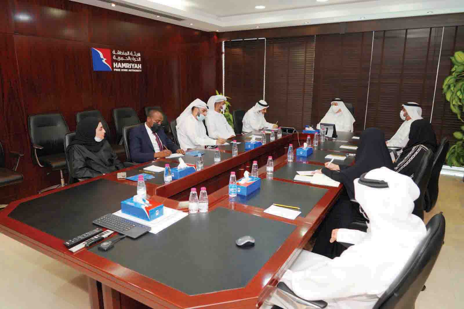 جاء ذلك خلال اجتماع تنسيقي انعقد مؤخراً في مقر هيئة المنطقة الحرة بالحمرية، حضره سعود سالم المزروعي مدير هيئة المنطقة الحرة بالحمرية وهيئة المنطقة الحرة لمطار الشارقة الدولي، وعبدالعزيز محمد شطاف مساعد المدير العام لقطاع الاتصال والأعمال في غرفة الشارقة، بحضور علي سعيد الجروان نائب المدير التنفيذي للشؤون التجارية، وهيا الخيال مديرة التراخيص، وعلي الزرعوني تنفيذي تطوير الأعمال في حرة الحمرية، ومن جانب الغرفة أمجد عوض الكريم إدريس رئيس قسم مجموعات العمل القطاعية، وسلطان عبدالله آل علي تنفيذي أول خدمة المصدرين وإدارة الأسواق، وعدد من ممثلي الإدارات المعنية.