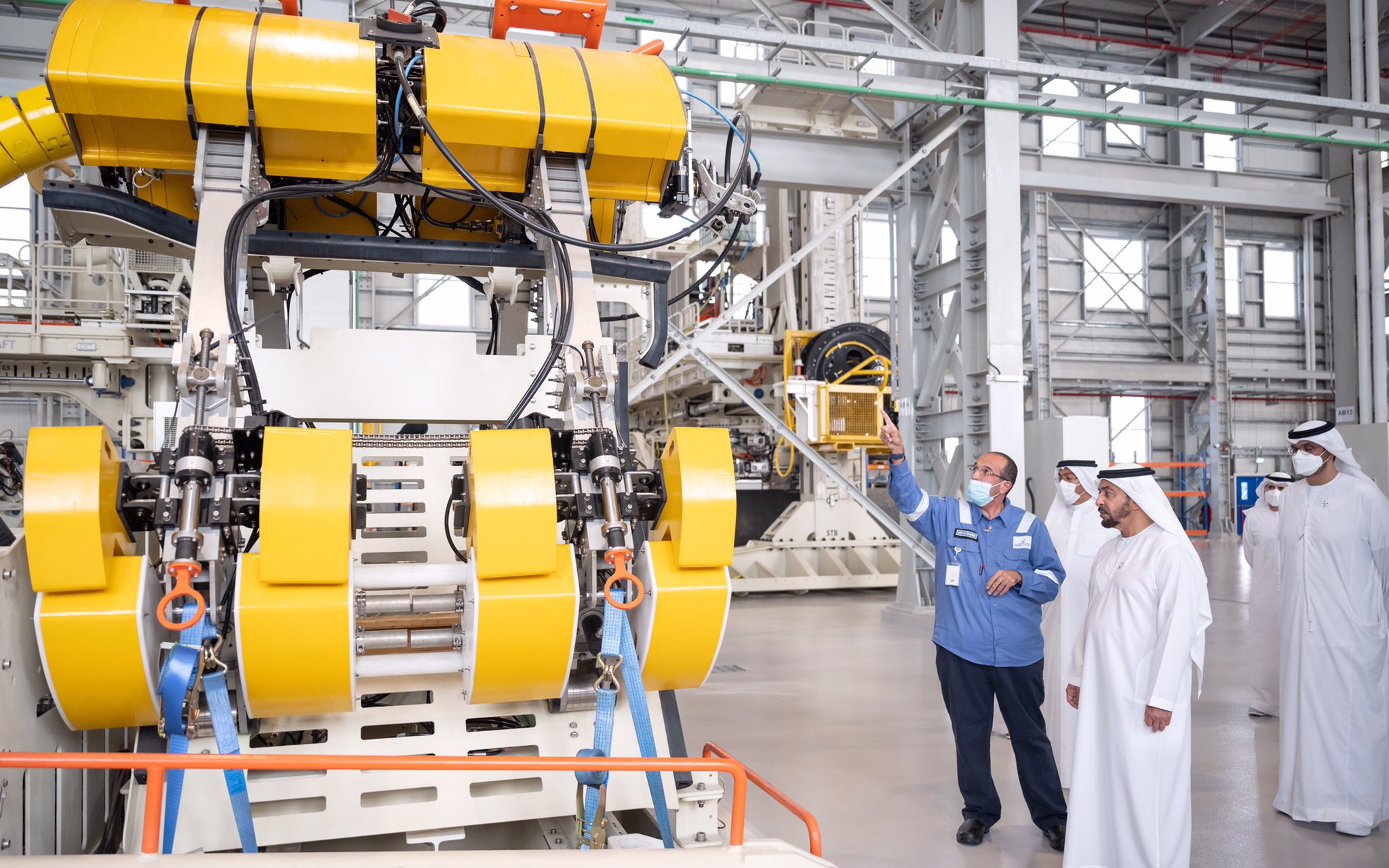 كما زار سموه غرفة التحكم عن بعد ، وآلية إزالة الطبقة الخرسانية ، وآلية الإطلاق والاستقبال والتثبيت تحت الماء بدون الاستعانة بغواصين والتي تعمل على وقف الضخ في الأنابيب وعزله ، وآليات تحريك وتثبيت الأنابيب ، بالإضافة إلى الغرفة العازلة للحام الجاف ومركز التحكم في اللحام.