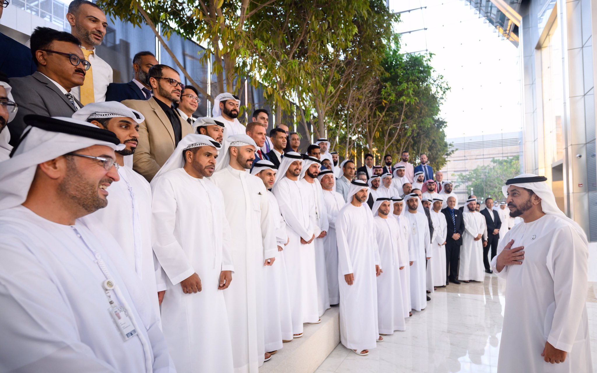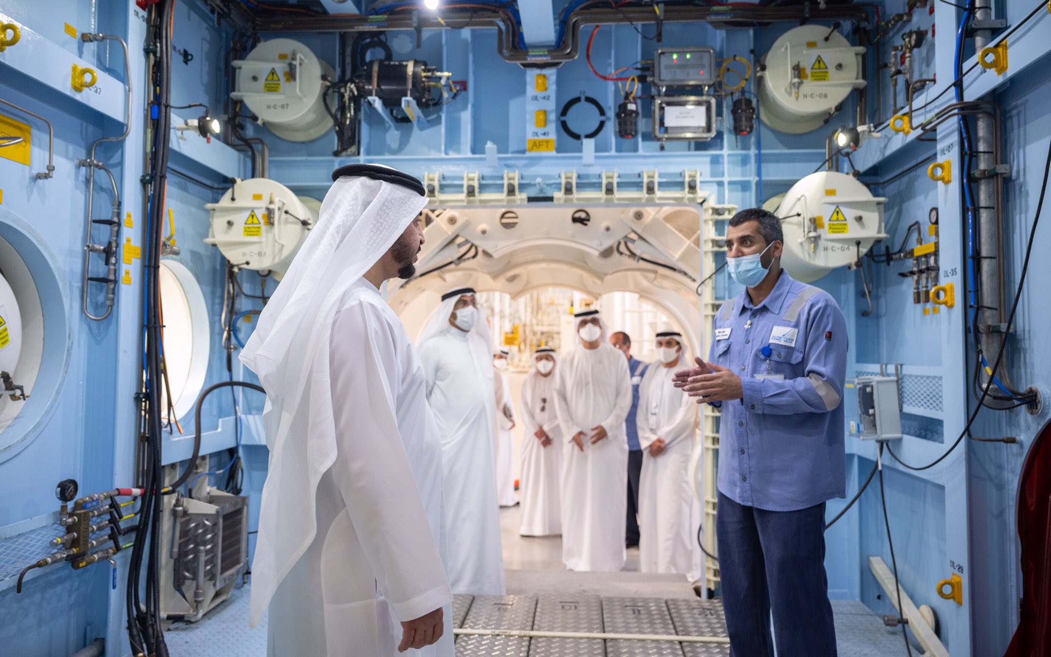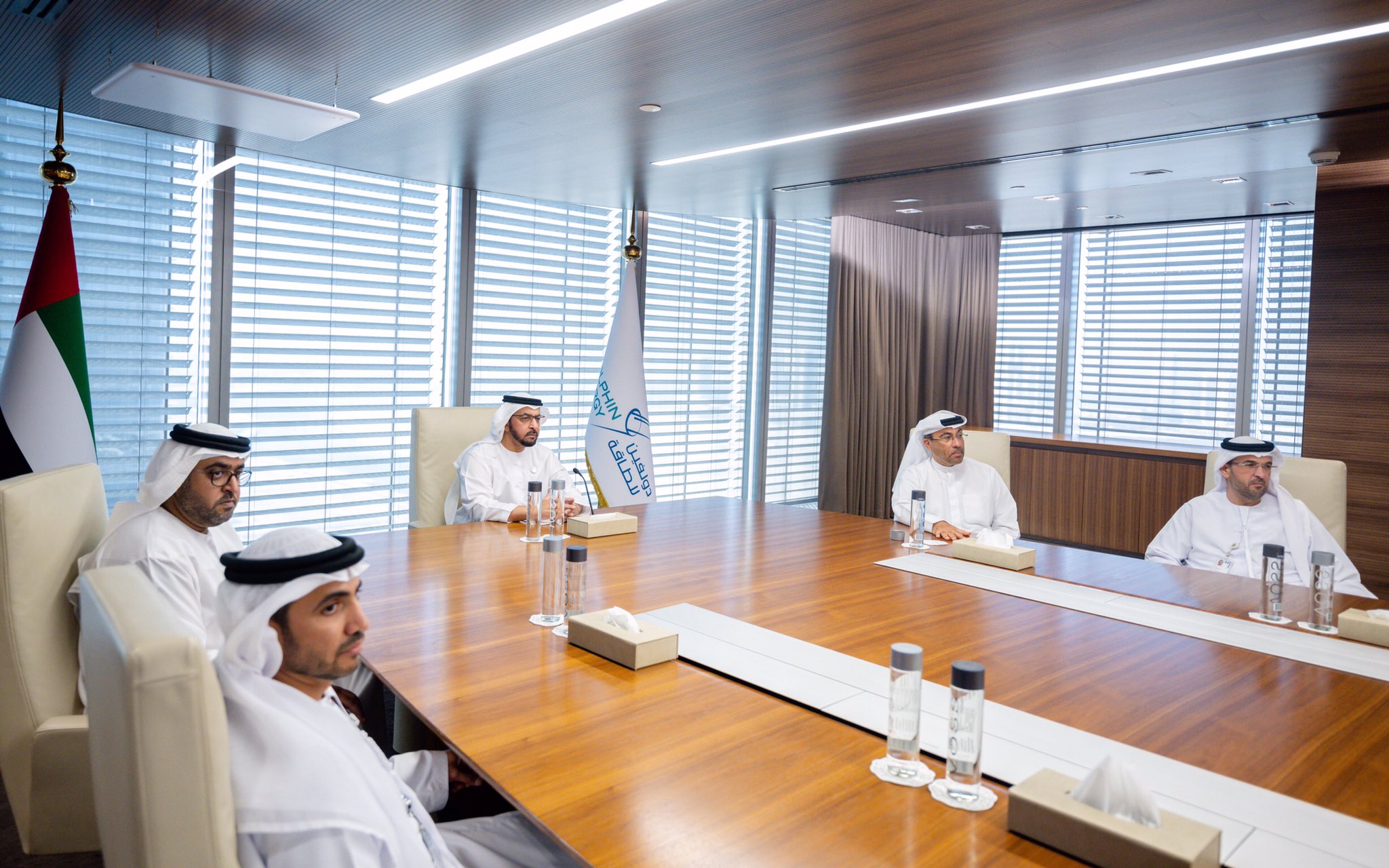 جاء ذلك خلال الزيارة التي قام بها سموه لشركة دولفين للطاقة المحدودة في منطقة خليفة الصناعية (كيزاد) ومقرها الرئيسي في جزيرة المارية في أبوظبي ورافقه خلالها الشيخ محمد بن حمدان بن زايد آل نهيان ومعالي الدكتور سلطان بن أحمد الجابر وزير الصناعة والتكنولوجيا المتقدمة العضو المنتدب والرئيس التنفيذي لشركة بترول أبوظبي الوطنية " أدنوك " ومجموعة شركاتها ومعالي أحمد بن علي محمد الصايغ وزير دولة والعضو المنتدب لشركة دولفين للطاقة ، والسيد عبيد عبدالله الظاهري الرئيس التنفيذي لشركة دولفين للطاقة المحدودة وسعادة احمد مطر الظاهري مدير مكتب سمو ممثل الحاكم في منطقة الظفرة وسعادة عيسى حمد بوشهاب مستشار سمو رئيس هيئة الهلال الأحمر الإماراتي وعدد من كبار المسؤولين.