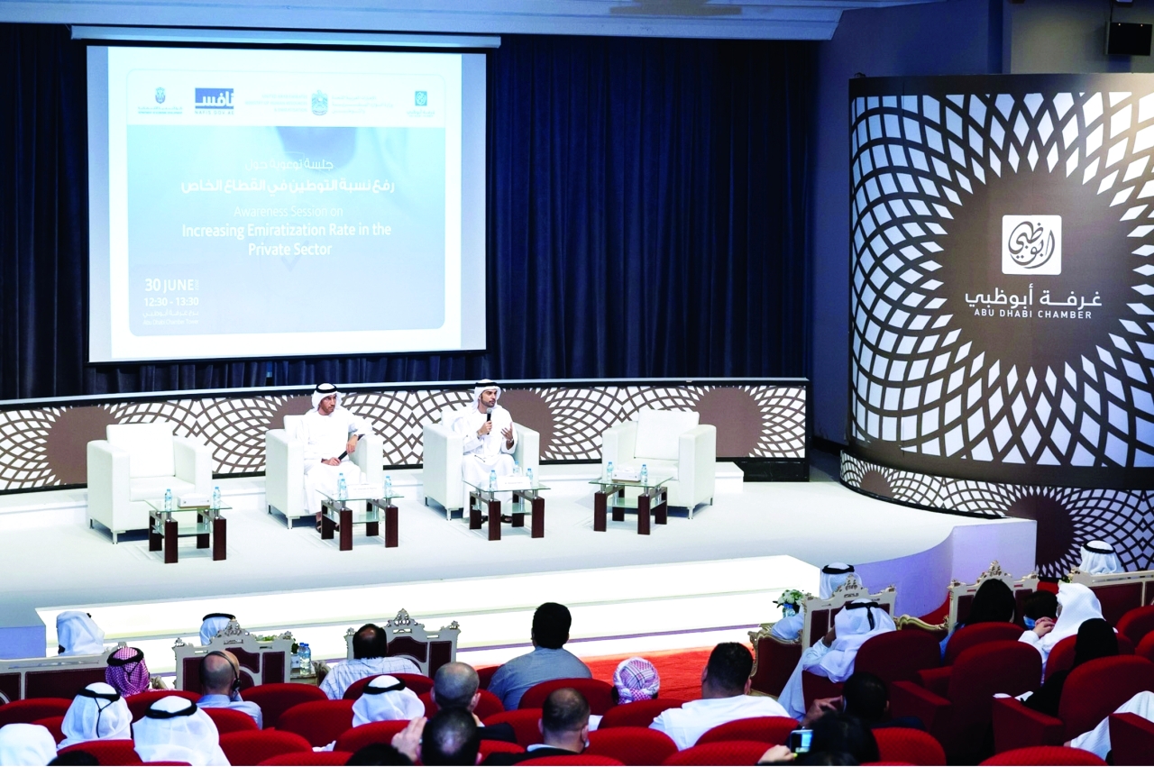 سلطت جلسة توعوية نظمتها غرفة تجارة وصناعة أبوظبي بالتعاون مع دائرة التنمية الاقتصادية بأبوظبي ومجلس تنافسية الكوادر الوطنية «نافس» ووزارة الموارد البشرية والتوطين، الضوء على جهود الإمارات لرفع نسبة التوطين في القطاع الخاص والمنظمة المتكاملة التي تعمل لتحقيق هذا الهدف.