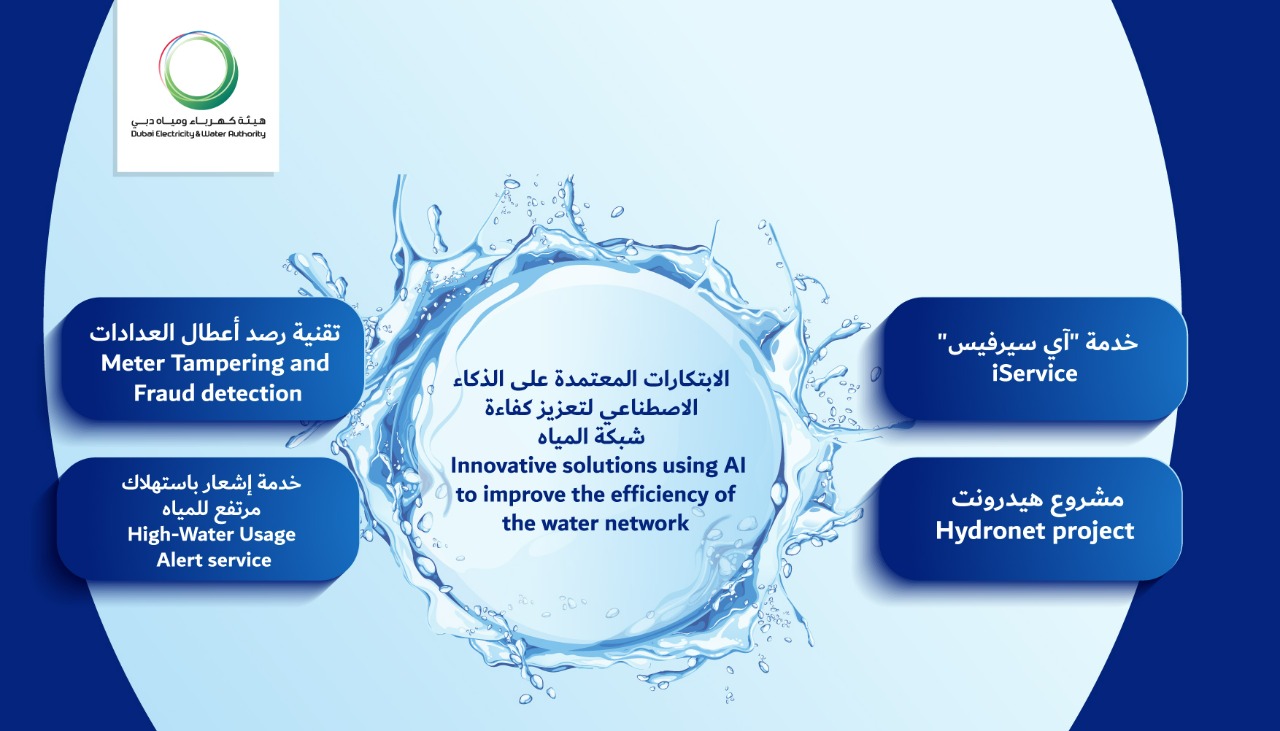 طورت هيئة كهرباء ومياه دبي عدداً من الابتكارات بالاعتماد على تقنية الذكاء الاصطناعي لتحسين كفاءة العمليات التشغيلية في شبكة المياه في دبي، ورصد الهجمات السيبرانية والتسريبات والأعطال وعزلها وإصلاحها على الفور. وتعمل هذه الحلول المبتكرة كذلك على التنبؤ بأعطال العدادات الذكية والمضخات استناداً إلى بيانات الحساسات، إضافة إلى أتمتة الإشعارات التي يتم إرسالها إلى المتعاملين في حال وجود احتمال تسريب للمياه في العقار، مما يعزز القدرات التنافسية لإمارة دبي، ودعم جهود الهيئة المستمرة لخفض الانبعاثات الكربونية، ومواصلة تفوقها على نخبة الشركات الأوروبية والأمريكية في العديد من المؤشرات، ففي عام 2021، بلغت نسبة الفاقد في شبكات المياه 5.3% مقارنة مع 15% في أمريكا الشمالية، وهي من أدنى النسب المسجلة على مستوى العالم، مما يعزز مكانة الهيئة بوصفها واحدة من أبرز المؤسسات الخدماتية حول العالم وأكثرها تميزاً في جميع المجالات.