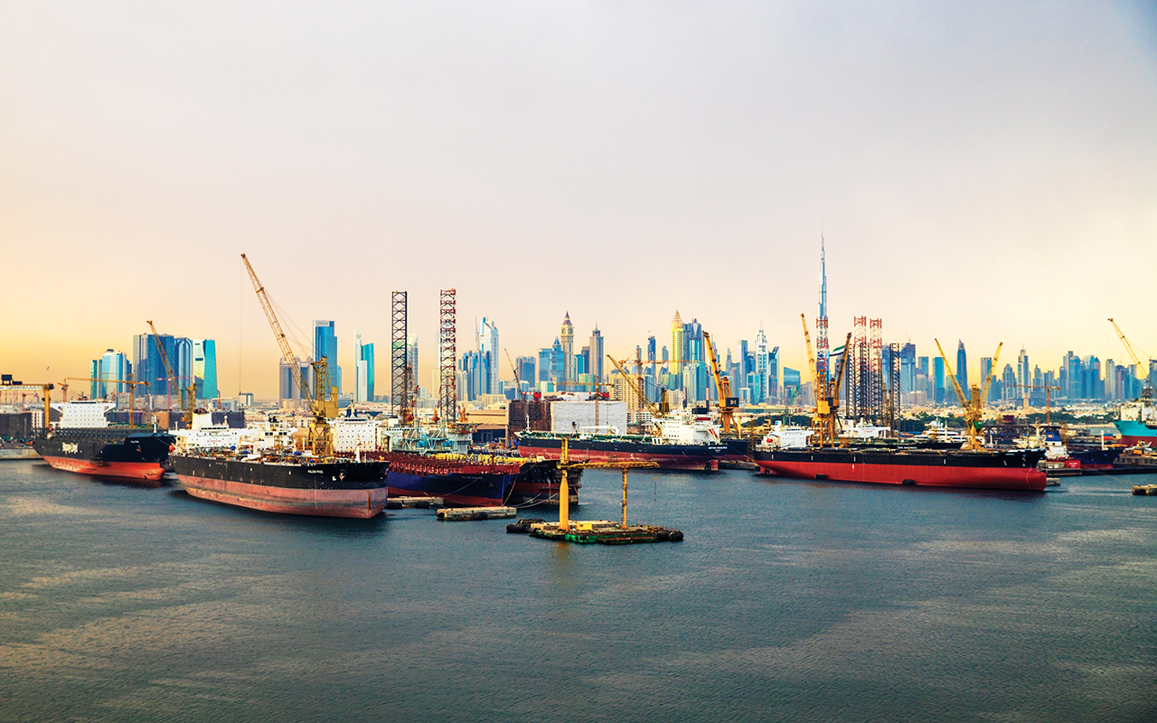 وتعتبر «الأحواض الجافة العالمية - دبي»، هي إحدى الشركات التابعة لمجموعة «دي بي ورلد»، وأكبر مركز في الشرق الأوسط لإصلاح السفن وتحويلها وبناء السفن الجديدة والحفّارات ومشاريع «الصيانة والإصلاح والتشغيل»، مع التركيز بشكل خاص على مشاريع الطاقة المتجددة وكفاءة الطاقة.