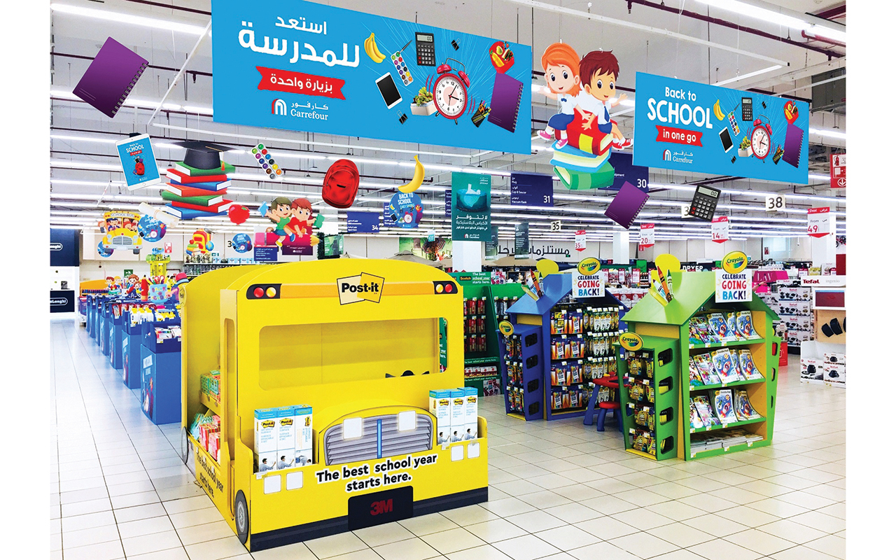 ويمكن لعملاء كارفور، إيجاد كافة مستلزمات العودة إلى المدرسة مثل القرطاسية والإلكترونيات والحقائب المدرسية والألبسة داخل فروع كارفور وعبر الإنترنت، بأسعار مخفضة تصل إلى أكثر من 50%. كما تقدم كارفور كافة الأطعمة الطازجة الأساسية، والوجبات الخفيفة والمشروبات، الأمر الذي من شأنه أن يجعل عملية تحضير علب الغداء اليومية للأطفال سهلة وممتعة وصحية، حيث تقدم كارفور كل ما تحتاجه العائلات في مكان واحد «دفعة واحدة ومرة واحدة».