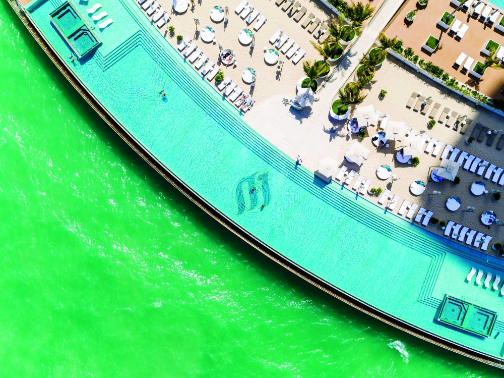 وجاء تصنيف البركة المتناهية في دبي في وقت تتنافس الفنادق على بناء برك عجائبية تتدلى من حواف منحدرات، أو برك معلقة فوق مناظر صحراوية، أو برك تصنع جسراً بين برجين.