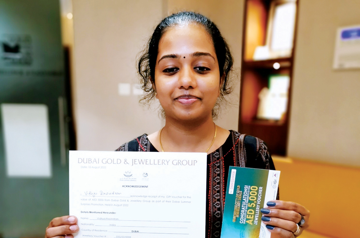 وأما روزالي فرانسيس، المتواجدة في دولة الإمارات منذ عام 2019 فقد قالت: «في كل موسم من مفاجآت صيف دبي، أقوم بجمع إيصالات الشراء للمشاركة في السحوبات المذهلة التي تقدمها مراكز التسوق في دبي. وفي هذا الموسم ابتسم لي الحظ أخيراً. فعندما اشترى لي زوجي هدية من مجوهرات مالابار للذهب والألماس كنت سعيدة جداً للفوز بقسيمة تسوق بقيمة 5000 درهم، والتي سأستخدمها لشراء هدية لوالدتي بمناسبة عيد ميلادها. أشكر الله على هذه الجائزة الرائعة، وأتقدم بخالص الشكر لفريق مفاجآت صيف دبي».
