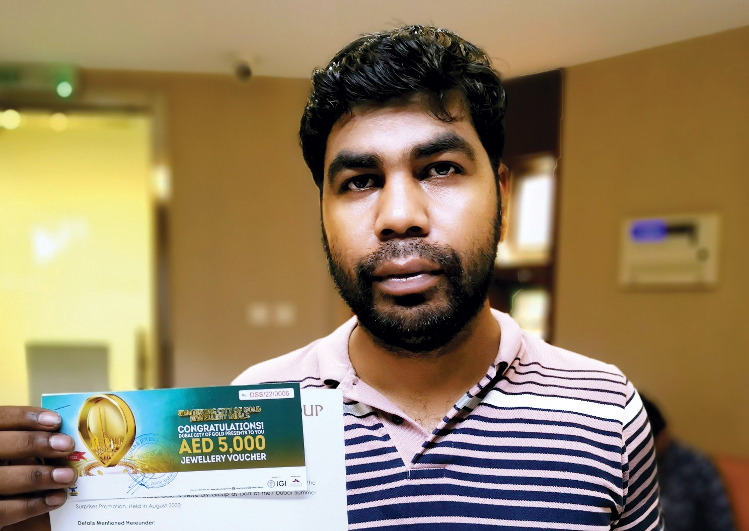 وكان جهانجير من بين الفائزين بإحدى هذه الجوائز لهذا العام، حيث علّق قائلاً: «أنا مقيم في دولة الإمارات منذ 12 عاماً ولم أشارك في أي نوع من السحوبات من قبل، وكانت هذه أولى تجاربي، وإنني الآن في غاية السعادة لحصولي على قسيمة تسوق بقيمة 5000 درهم، حيث إنني سأستخدمها لشراء بعض المصوغات الذهبية لوالدتي في بنغلاديش».