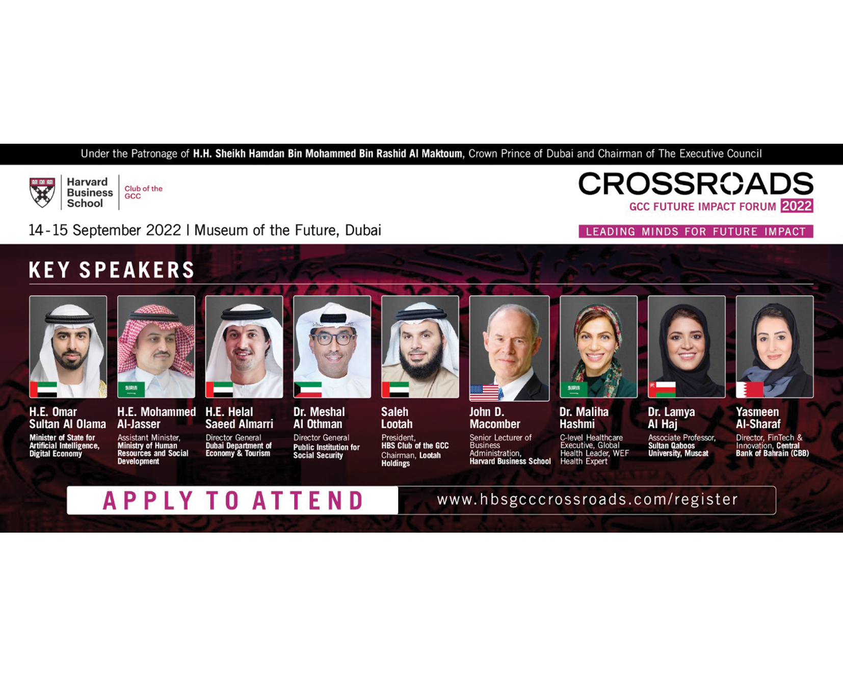 ومع اكتساب منطقة دول التعاون زخماً هائلاً كنتيجة للتداعيات والأحداث الجيوسياسية الأخيرة، وتبنيها مبادرات تنموية شاملة على الصعد البيئية الاجتماعية والاقتصادية، يدرك نادي كلية هارفارد للأعمال في دول التعاون أهمية هذه المرحلة وضرورة تنظيم منتدى حواري بمشاركة نخبة من صناع القرار ورواد الأعمال في المنطقة لإعادة رسم وتشكيل سياسات وأجندات جديدة لمواكبة ركب التنمية العالمي.