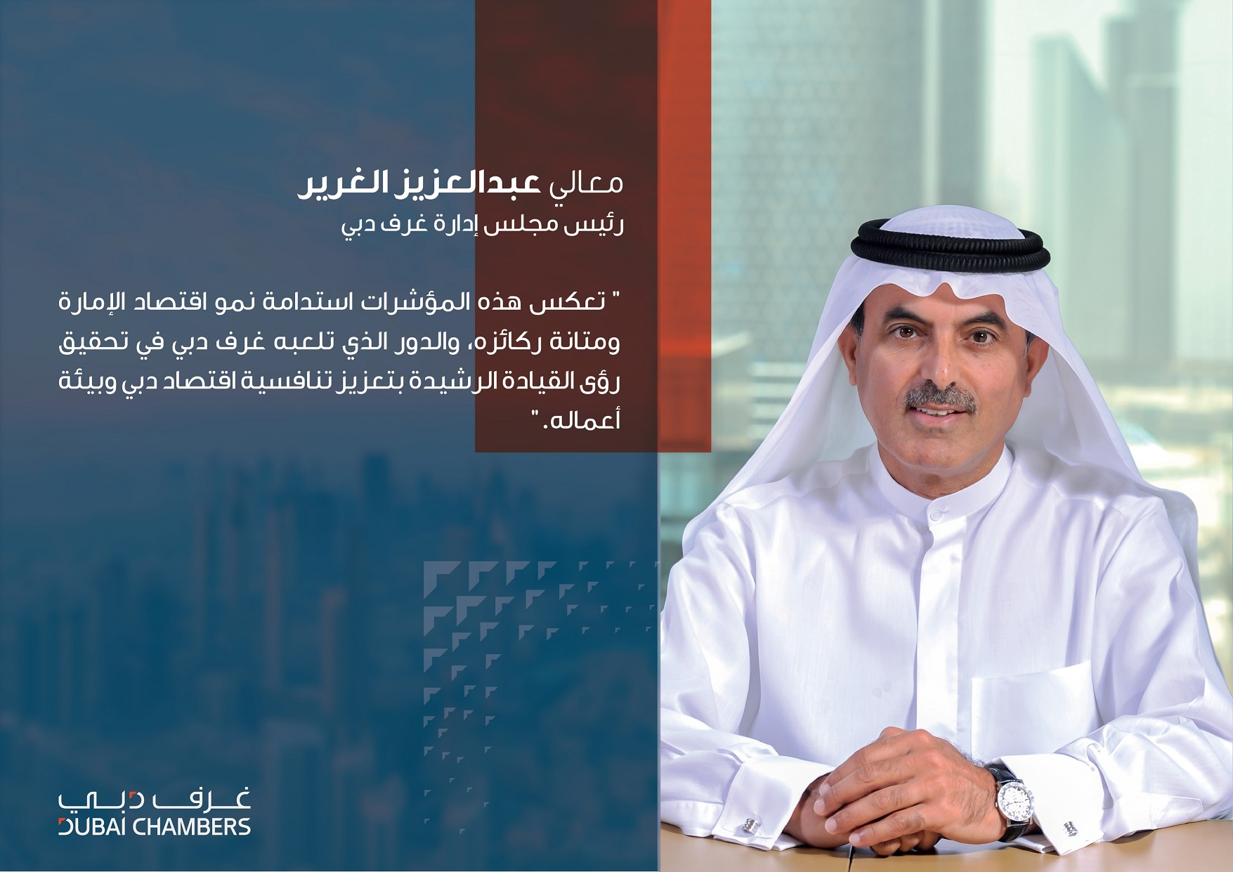 وأشار معالي عبد العزيز الغرير رئيس مجلس إدارة غرف دبي، إلى أن الارتقاء بتنافسية اقتصاد دبي، هو الأولوية في المرحلة المقبلة، حيث يعتبر النموذج الاقتصادي للإمارة، عامل استقطاب هاماً للشركات الناشئة والقائمة، معتبراً أن غرف دبي نجحت بعد اعتماد استراتيجيتها الجديدة، في تطبيق مبادرات متنوعة، أثمرت نمواً متزايداً في عدد الأعضاء، وتنوعاً في وجهات صادرات وإعادة صادرات الأعضاء.