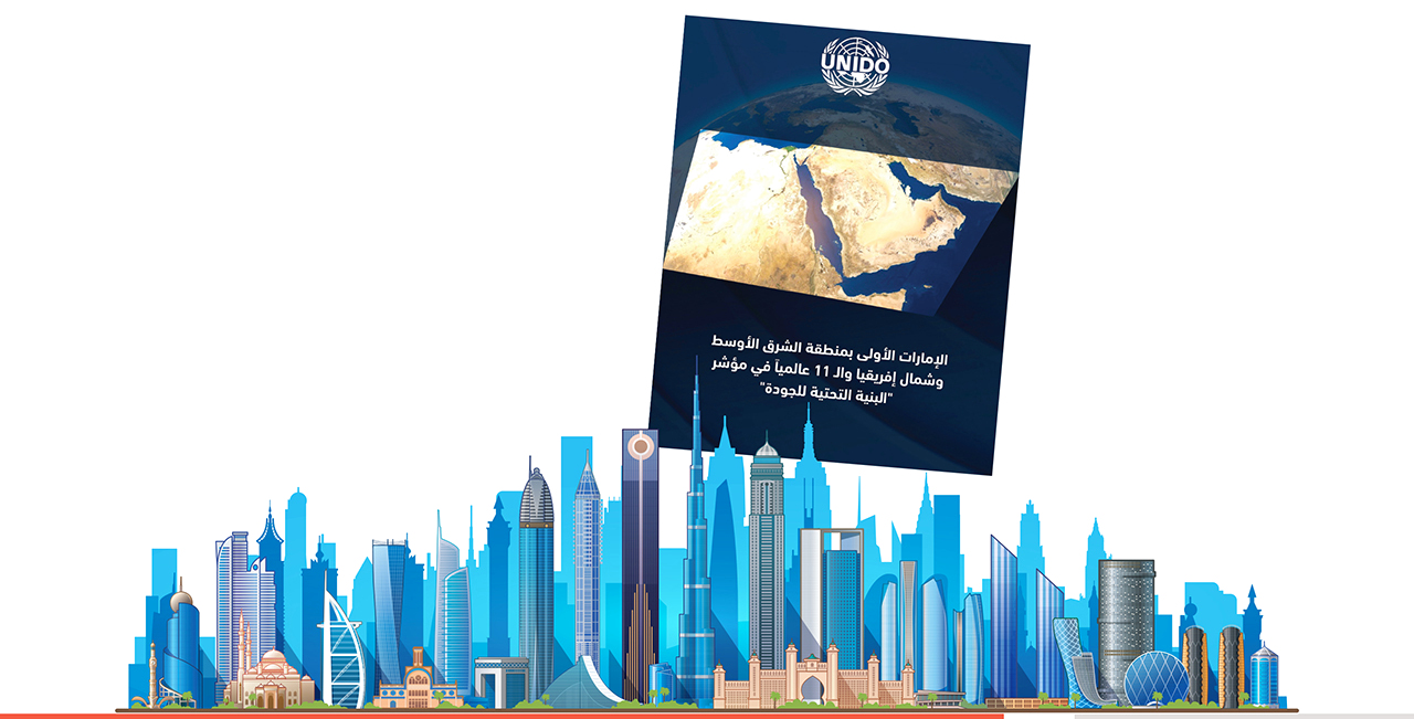 تصدرت دولة الإمارات منطقة الشرق الأوسط وشمال أفريقيا وحلت بالمركز 11 عالمياً في مؤشر البنية التحتية للجودة للتطور المستدام، الصادر عن منظمة الأمم المتحدة للتنمية الصناعية «UNIDO» والشبكة الدولية للبنية التحتية للجودة (INet QI) لعام 2022 لفئة الدول ذات الناتج المحلي الإجمالي بين 100 مليار دولار و1 تريليون دولار، متقدمة على دول مثل، البرتغال، سنغافورة، فنلندا، الدنمارك، وبلجيكيا.