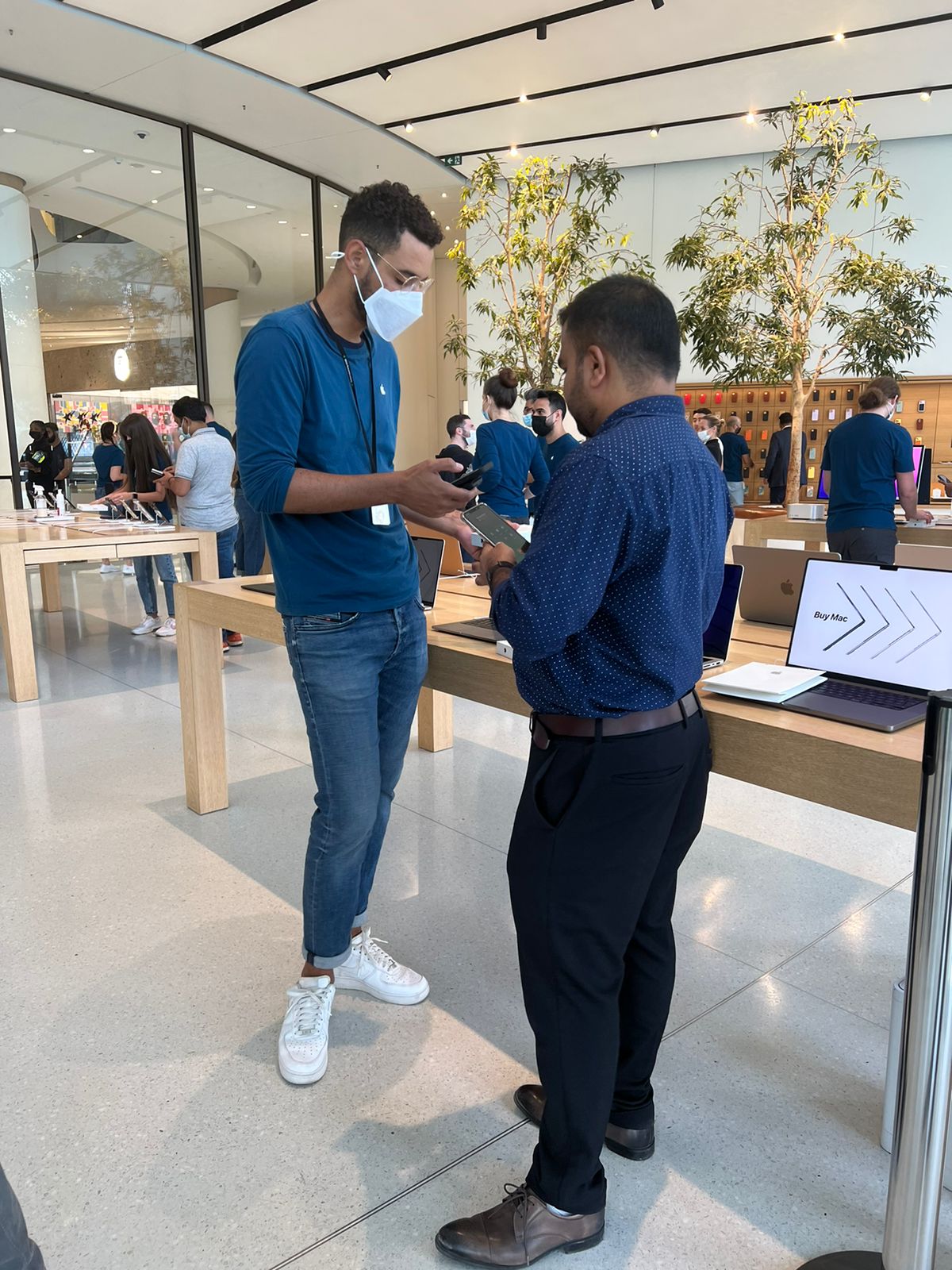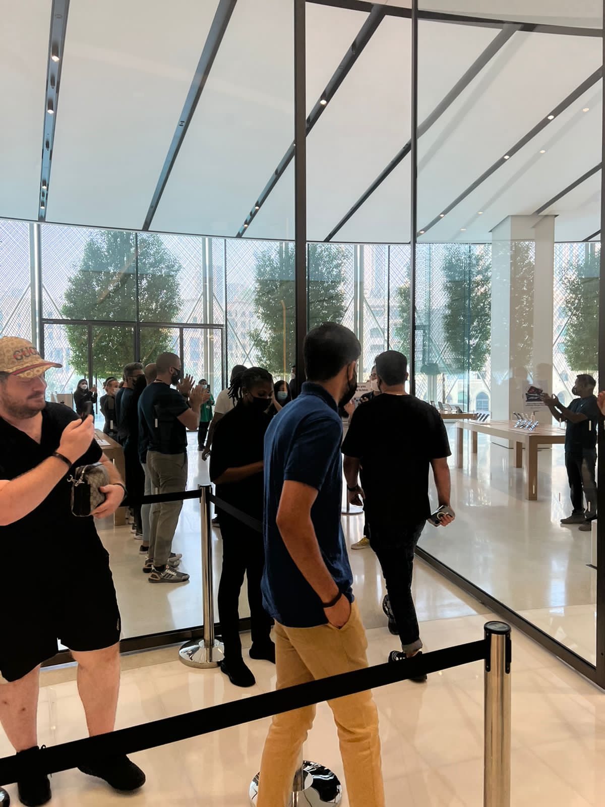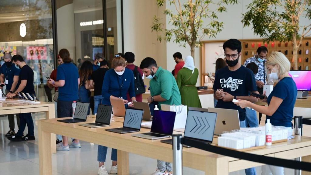 وافتتحت العديد من متاجر “أبل ستور” حول العالم مبكراً في حوالي الساعة 8:00 صباحاً بالتوقيت المحلي للسماح للعملاء باستلام الأجهزة المحجوزة وإجراء عمليات الشراء دون الحاجة إلى الحضور.