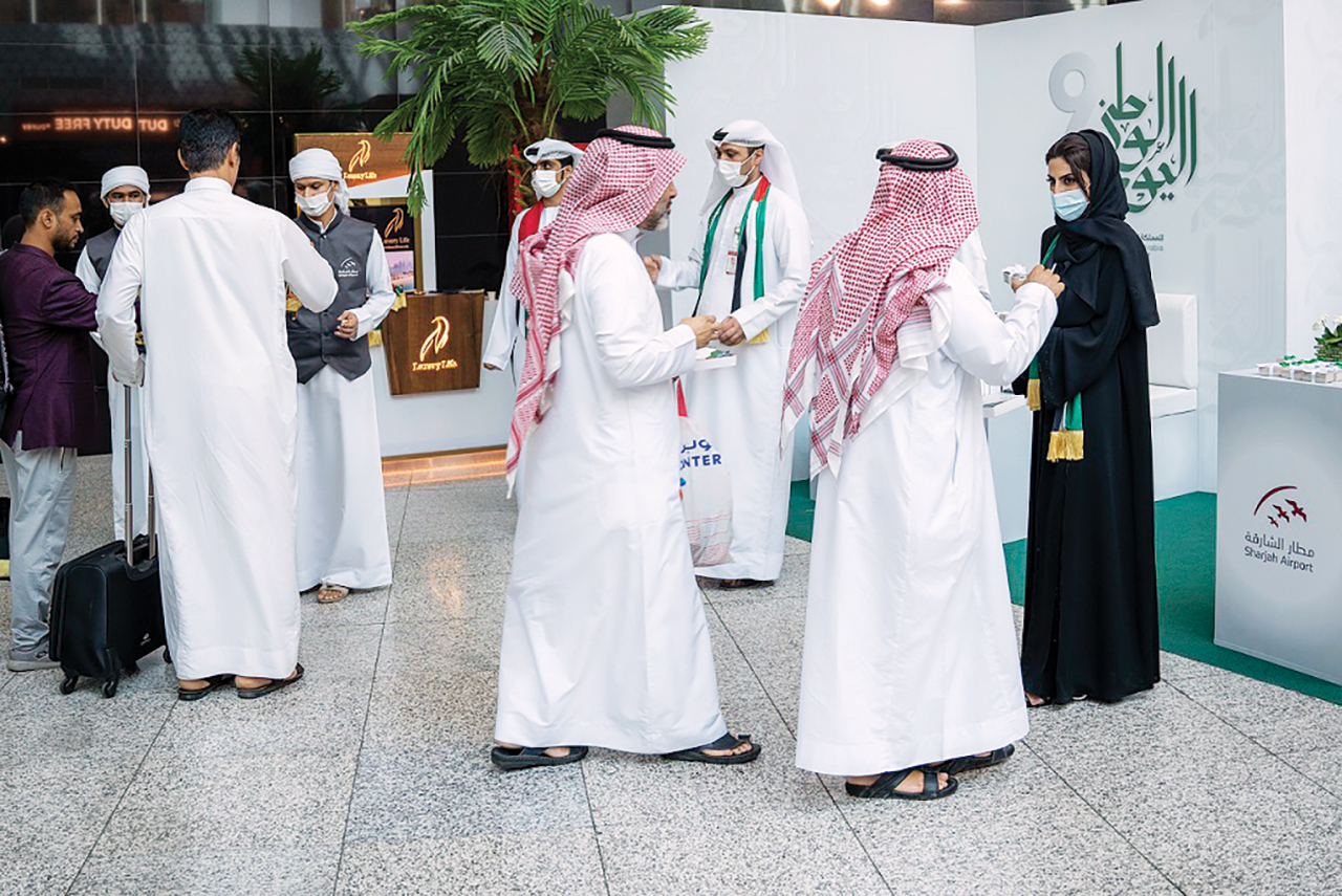 تأكيداً للعلاقات الأخوية والأواصر التاريخية المشتركة بين الشعبين الإماراتي والسعودي، شارك موظفو هيئة مطار الشارقة الدولي وممثلو الجهات العاملة في المطار المسافرين السعوديين القادمين إلى الدولة عبر مطار الشارقة احتفالاتهم باليوم الوطني الـ92 للمملكة العربية السعودية، الذي يصادف الثالث والعشرين من سبتمبر من كل عام.
