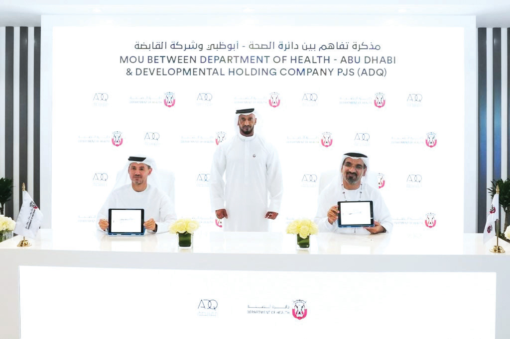 وبحضور عبدالله بن محمد آل حامد، رئيس دائرة الصحة – أبوظبي، وقع مذكرة تفاهم كل من الدكتور جمال محمد الكعبي، وكيل دائرة الصحة – أبوظبي، وفهد القاسم، المدير التنفيذي للرعاية الصحية وعلوم الحياة في «القابضة».