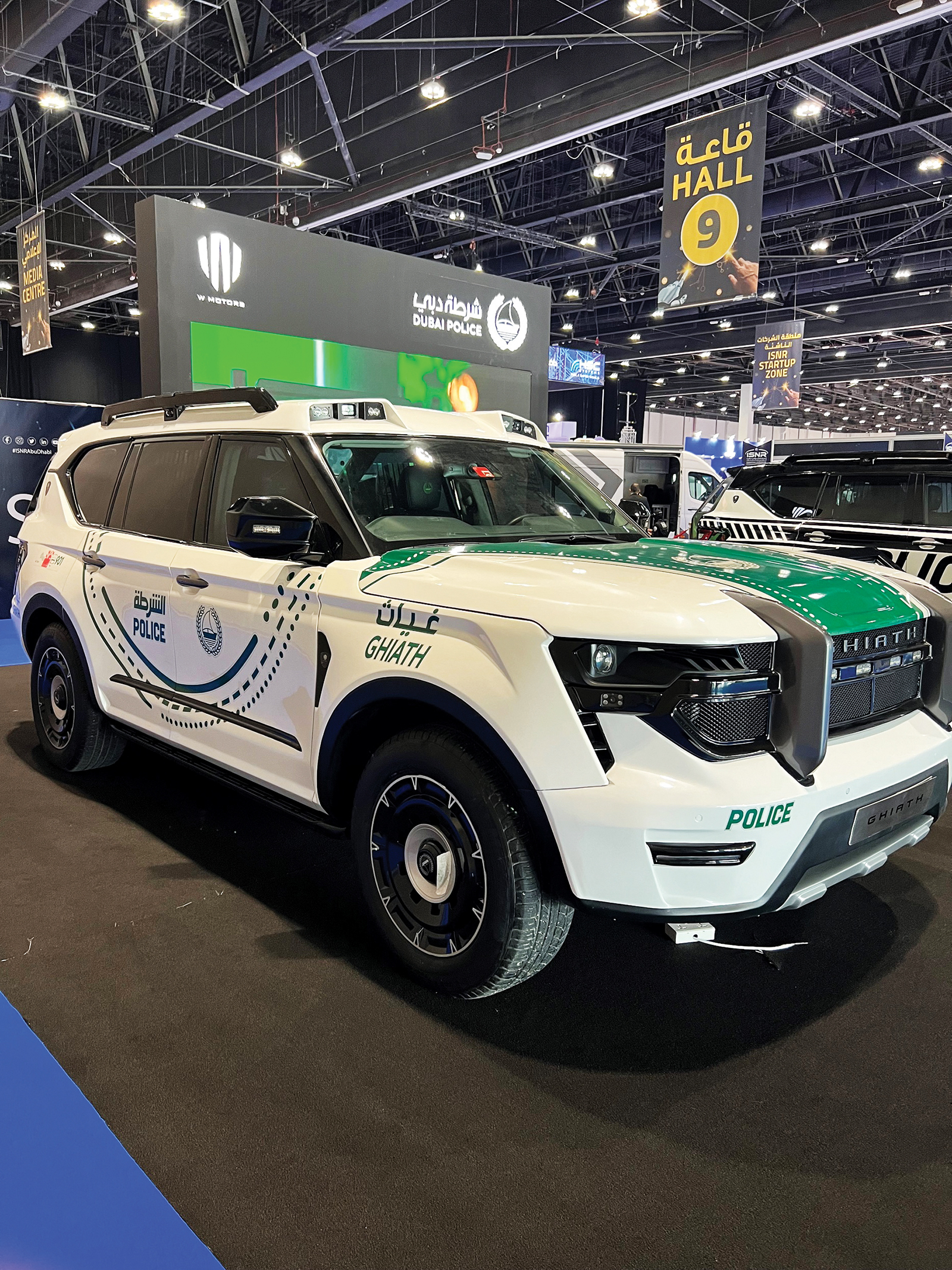 وأضاف، إن القيادة العامة لشرطة دبي تعرض خلال مشاركتها في المعرض، دورية غياث الذكية، والتي تعتبر واحدة من أكثر السيارات الأمنية تطوراً في العالم، وهي أولى سيارات الشركة التي يتم إنتاجها بالكامل في الدولة، وتمتلك مزايا وقدرات تلبي المتطلبات الأمنية في شرطة دبي، وتتيح الحفاظ على المكانة الريادية لأفضل معايير الدوريات الأمنية العالمية.