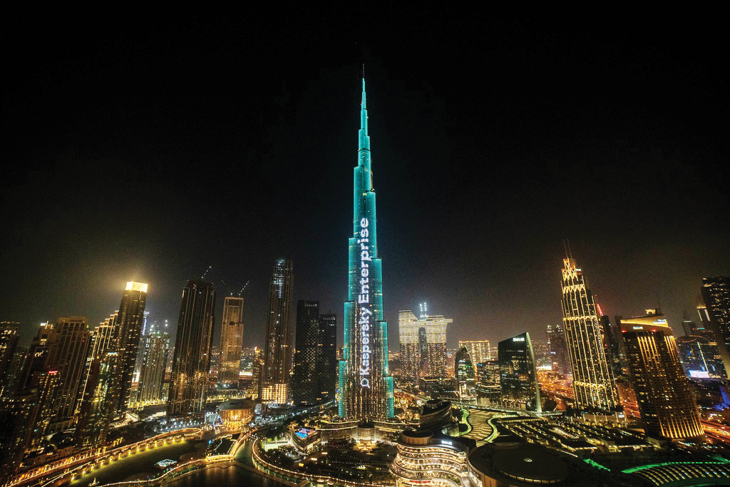 أضاءت كاسبرسكي، برج خليفة المبنى الأعلى في العالم، بعرض ضوئي، استهدف التعريف بالتهديدات الرقمية المتزايدة التي تواجهها المؤسسات اليوم، وتأكيد حاجتها إلى شريك موثوق به في مجال الأمن الرقمي، لضمان الاستمرار في تحقيق التنمية المستدامة، كما استهدف العرض، التعريف بأرفع قدرات الأمن الرقمي الخاصة بحماية المؤسسات من تلك التهديدات.