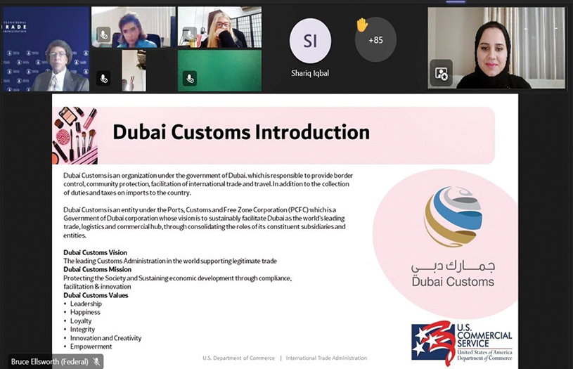 شارك في الاجتماع من جمارك دبي مريم المهيري مدير قسم العلاقات الخارجية، وخلود الحوسني ضابط قسم التوعية والتثقيف، ومن الجانب الأمريكي بروس إلسورث ضابط الملحق الرقمي، والعديد من الشركات التابعة للملحق التجاري في السفارة، التي تتطلع إلى التوسع بالتجارة في أسواق دبي.