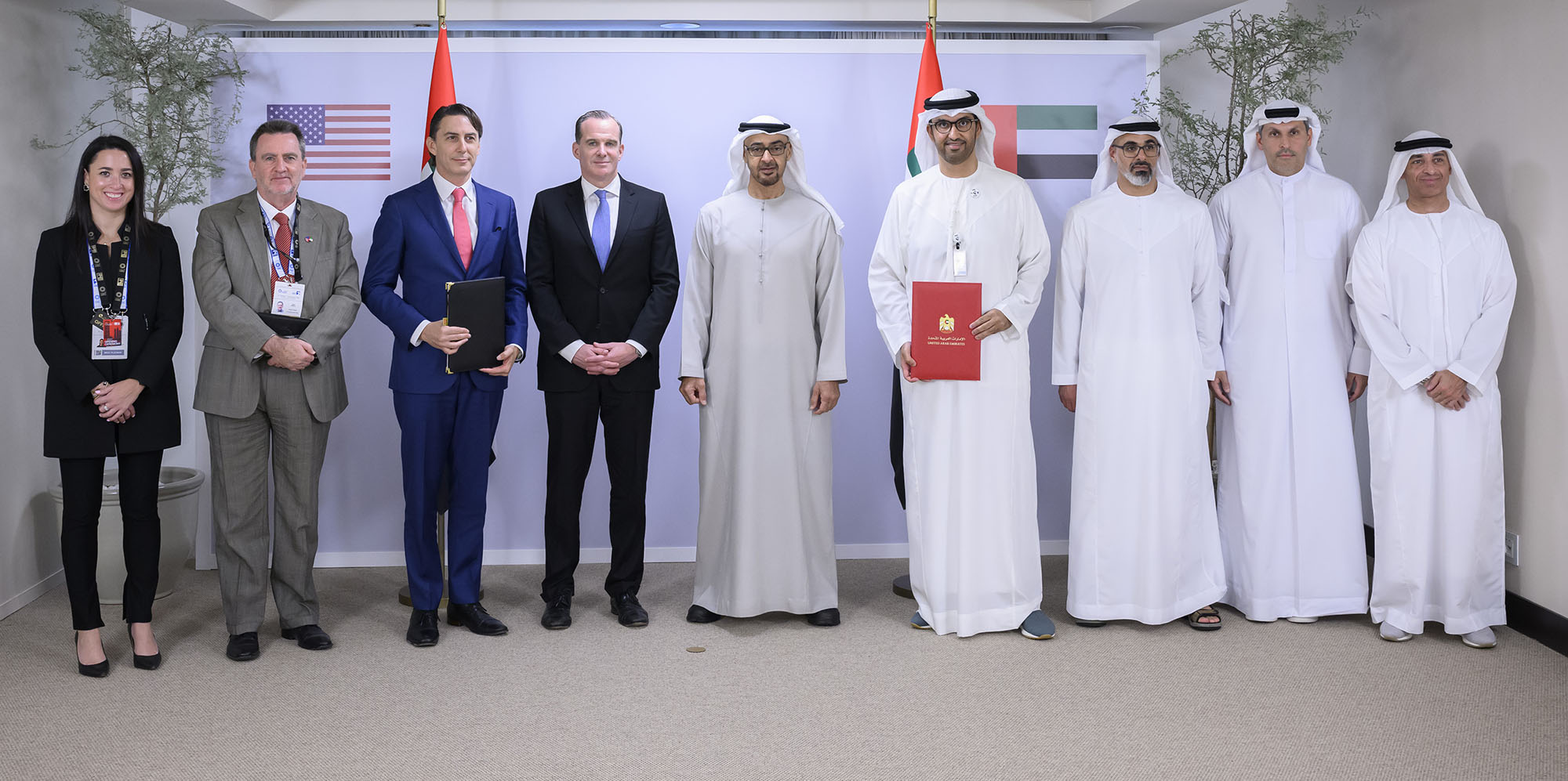 شهد صاحب السمو الشيخ محمد بن زايد آل نهيان رئيس الدولة “حفظه الله” توقيع شراكة استراتيجية بين دولة الإمارات العربية المتحدة والولايات المتحدة الأمريكية لاستثمار 100 مليار دولار في تنفيذ مشروعات للطاقة النظيفة تبلغ طاقتها الإنتاجية 100 غيغاواط في كل من دولة الإمارات والولايات المتحدة ومختلف أنحاء العالم بحلول عام 2035 .. وذلك بهدف تعزيز أمن الطاقة ونشر تطبيقات التكنولوجيا النظيفة ودعم العمل المناخي.