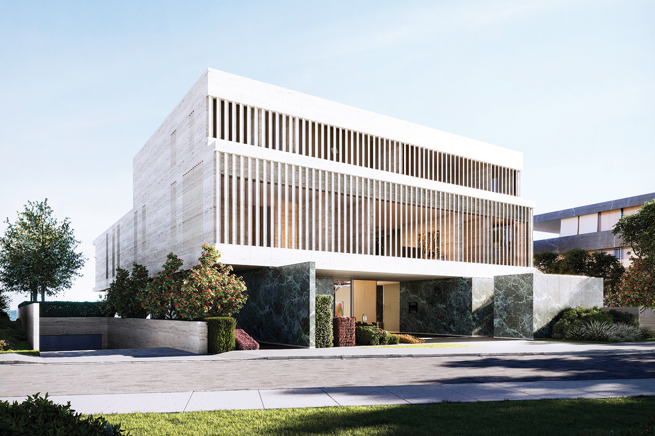 ويتكون كل واحد من المنازل الفخمة التي تم طرحها من أربعة طوابق (طابق سفلي وآخر أرضي وطابقين علويين)، كما يضم ثماني غرف ومجلساً وسبا وغرفة للسينما وصالة رياضية فاخرة مزودة المعدات الحديثة. ويأتي تصميم هذه المنازل الفخمة وفق مفهومين معماريين، وهما: الأرض (46,648.2 قدماً مربعة) والماء (45,927.24 قدماً مربعة).