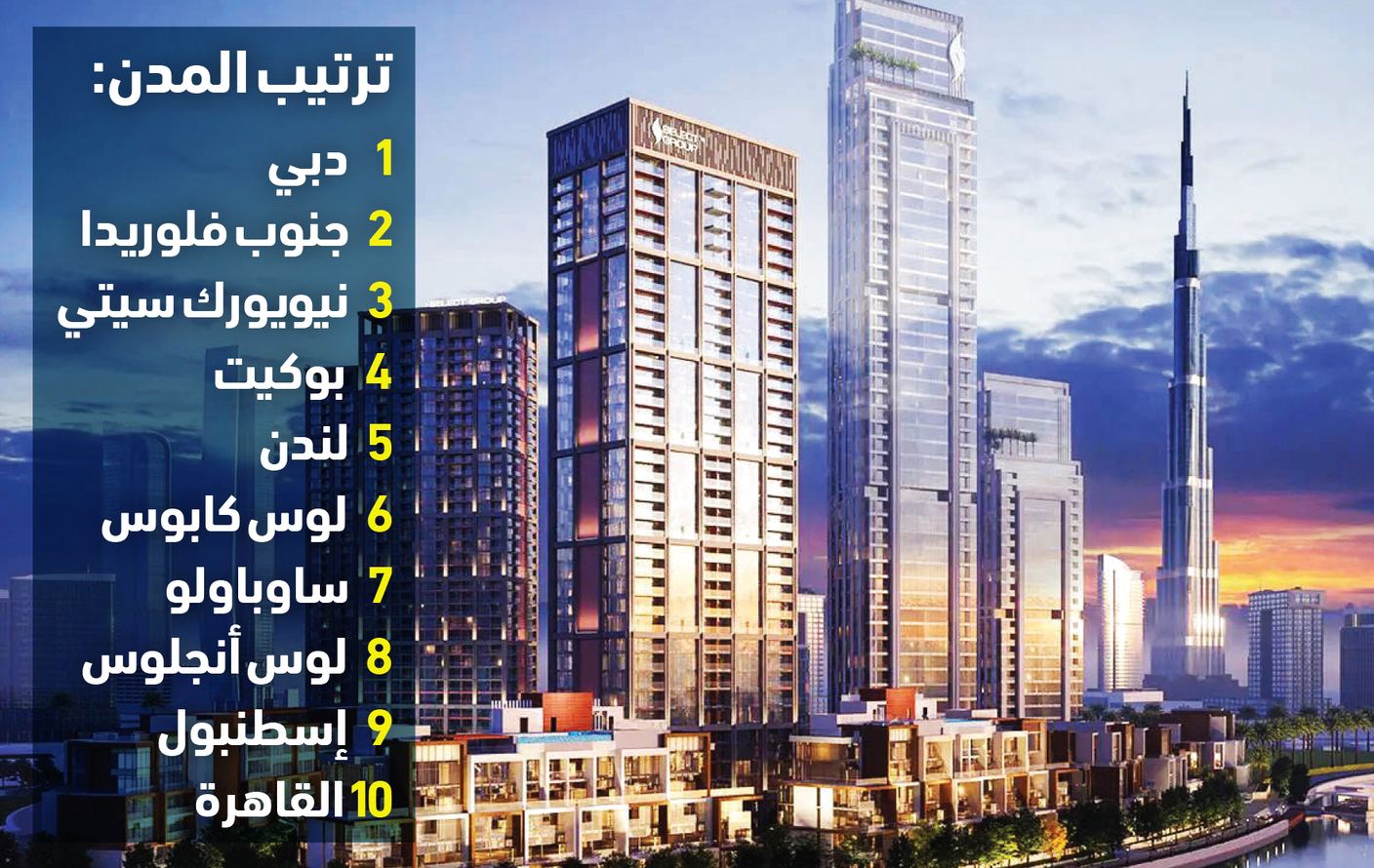 وضمت قائمة أفضل المواقع من حيث مشاريع المساكن التابعة لعلامات تجارية فاخرة، دبي التي احتلت المرتبة الأولى، ثم جنوب فلوريدا ثانية، ونيويورك ثالثة، وبوكيت التايلاندية رابعة، ولندن خامسة، ولوس كابوس المكسيكية سادسة، وساوباولو سابعة، ولوس آنجلوس ثامنة، وإسطنبول تاسعة، والقاهرة في المرتبة العاشرة.