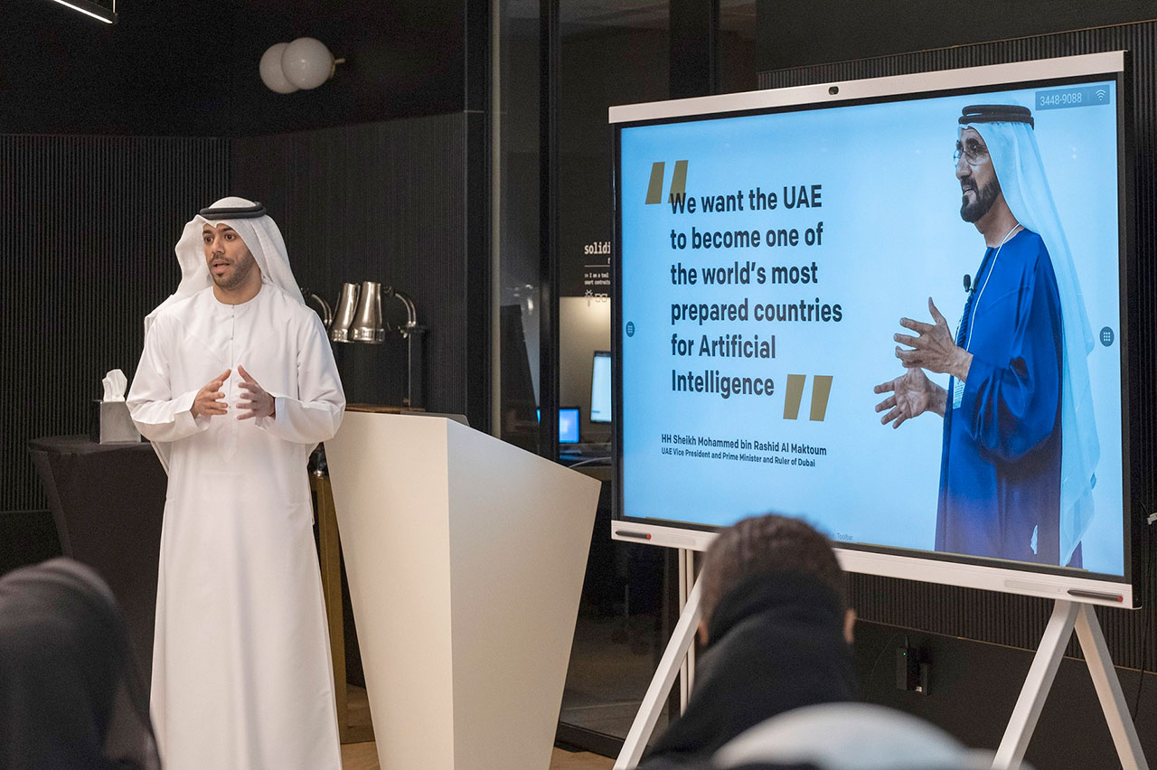 وتضمن البرنامج ورشة تعريفية عن استراتيجية الإمارات للذكاء الاصطناعي أحد مشاريع “مئوية الإمارات 2071” والاستراتيجية الوطنية للاقتصاد الرقمي تحدث فيها خالد النعيمي، مدير مشاريع في مكتب الذكاء الاصطناعي والاقتصاد الرقمي وتطبيقات العمل عن بعد عن استراتيجيات الدولة النوعية في المجالات التقنية لجعل دولة الإمارات رائدة عالميا في مجال الذكاء الاصطناعي وترسيخ مكانتها منصة عالمية للتكنولوجيا.