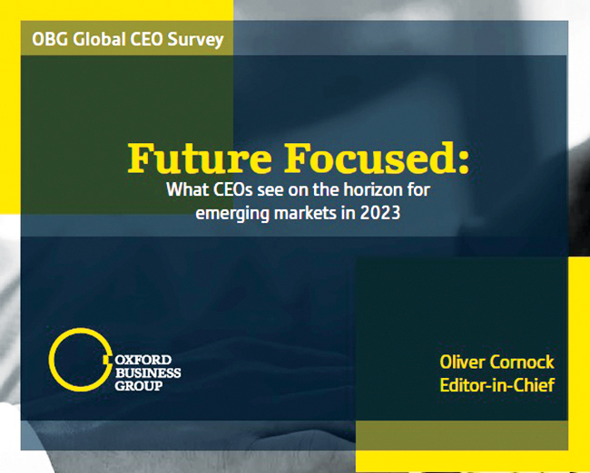 وجاء أول تقرير تصدره مجموعة «أكسفورد» للأعمال لاستبيان الرؤساء التنفيذيين منذ 2019 مصحوباً بتحليل متعمّق للنتائج، إلى جانب وجهة نظر تمهيدية من قبل أوليفر كورنوك، رئيس تحرير المجموعة. إضافة إلى ذلك، تضمّن التقرير وجهات نظر كوكبة من المحررين الإقليميين بالمجموعة حول نتائج ومؤشرات النمو في الأسواق التي يعملون بها. ويمكن للمهتمين الاطلاع على الاستبيان بالكامل عبر الرابط: (https://oxfordbusinessgroup.com/ceo-surveys/global-ceo-survey-what-is-on-the-horizon-for-emerging-markets).