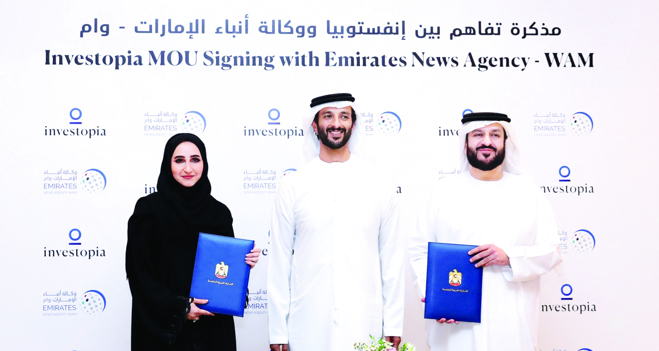 وقّعت منصة إنفستوبيا العالمية للاستثمار، التي أطلقتها حكومة الإمارات في سبتمبر 2021، مذكرة تفاهم مع وكالة أنباء الإمارات «وام»، ستكون الوكالة بموجبها شريكاً إعلامياً للنسخة الثانية من مؤتمر إنفستوبيا 2023، الذي يعقد يومي 2 - 3 مارس المقبل في العاصمة أبوظبي، تحت عنوان «استشراف الفرص في عصر التغيرات».