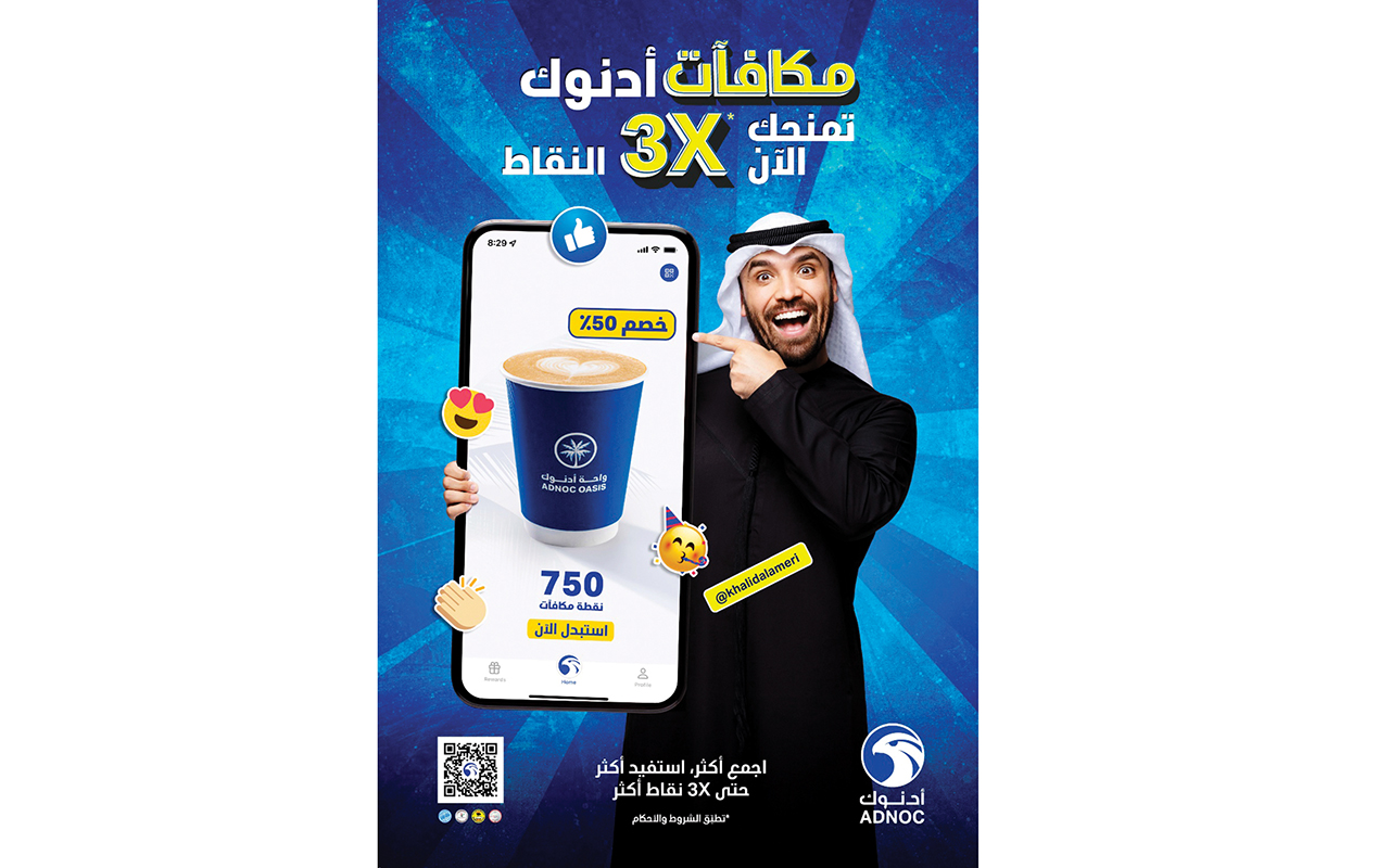 واعتباراً من اليوم، سيحصل عملاء أدنوك للتوزيع على ما يصل إلى ثلاثة أضعاف نقاط المكافآت مقابل كل عملية شراء يقومون بها ليستبدلونها مقابل منتجاتهم المفضلة في متاجر واحة أدنوك.