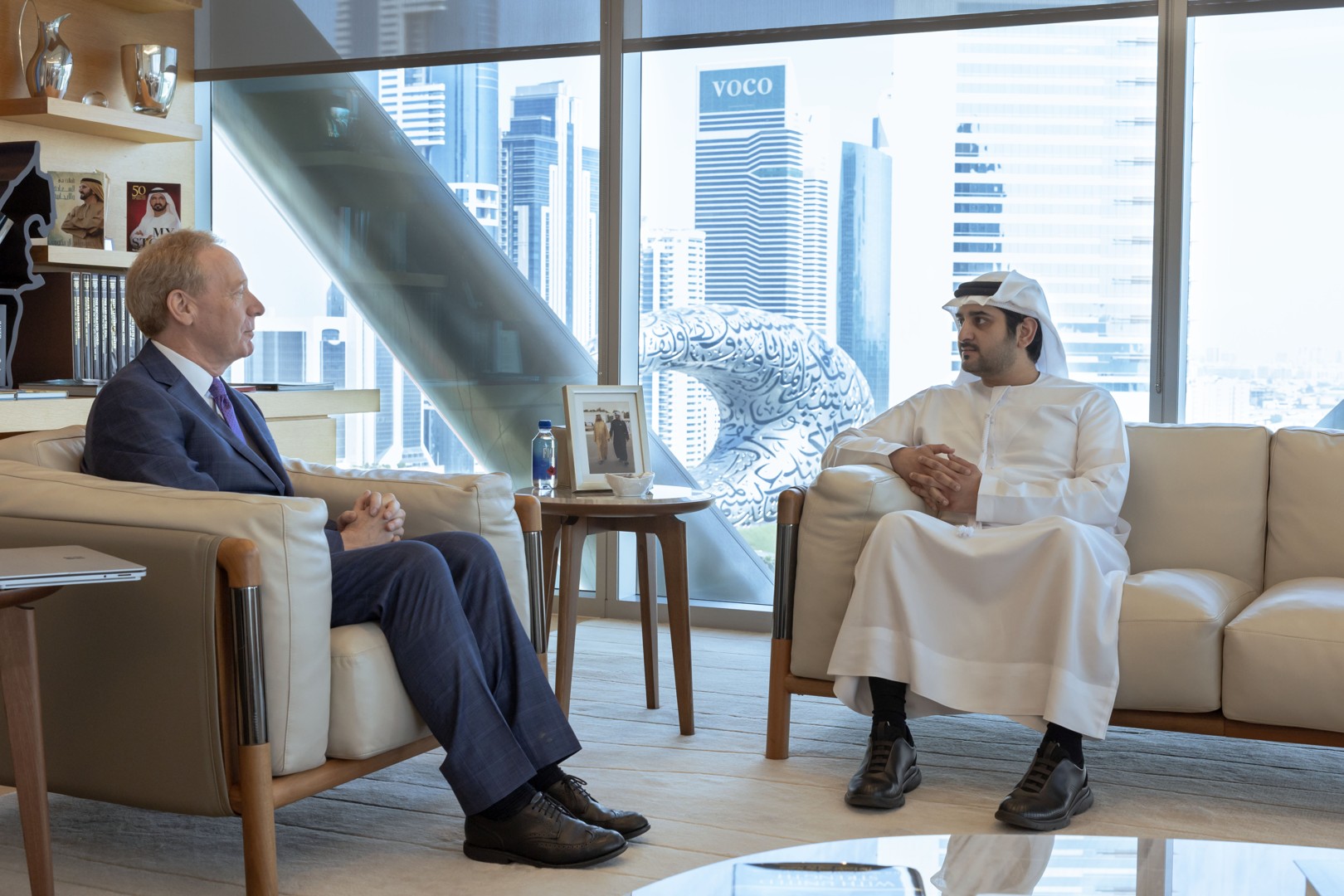 التقى سمو الشيخ مكتوم بن محمد بن راشد آل مكتوم، نائب حاكم دبي رئيس مركز دبي المالي العالمي، اليوم (الثلاثاء) في مكتب سموه بالمركز براد سميث، نائب رئيس مجلس الإدارة ورئيس شركة مايكروسوفت.