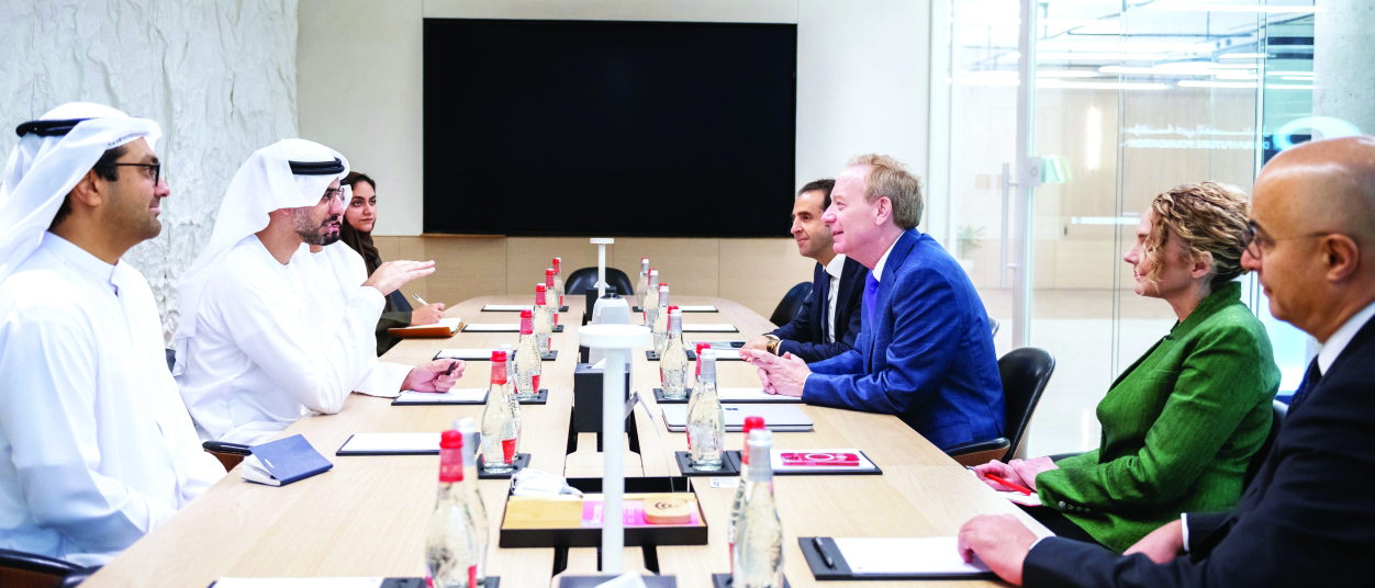 بحث معالي عمر سلطان العلماء وزير دولة للذكاء الاصطناعي والاقتصاد الرقمي وتطبيقات العمل عن بعد، مع براد سميث نائب رئيس مجلس الإدارة رئيس شركة مايكروسوفت العالمية، سبل تعزيز البنية التحتية الرقمية، وتطوير تطبيقات الذكاء الاصطناعي الفائق، لمواكبة التغييرات العالمية الكبيرة في قطاعات التكنولوجيا والذكاء الاصطناعي.