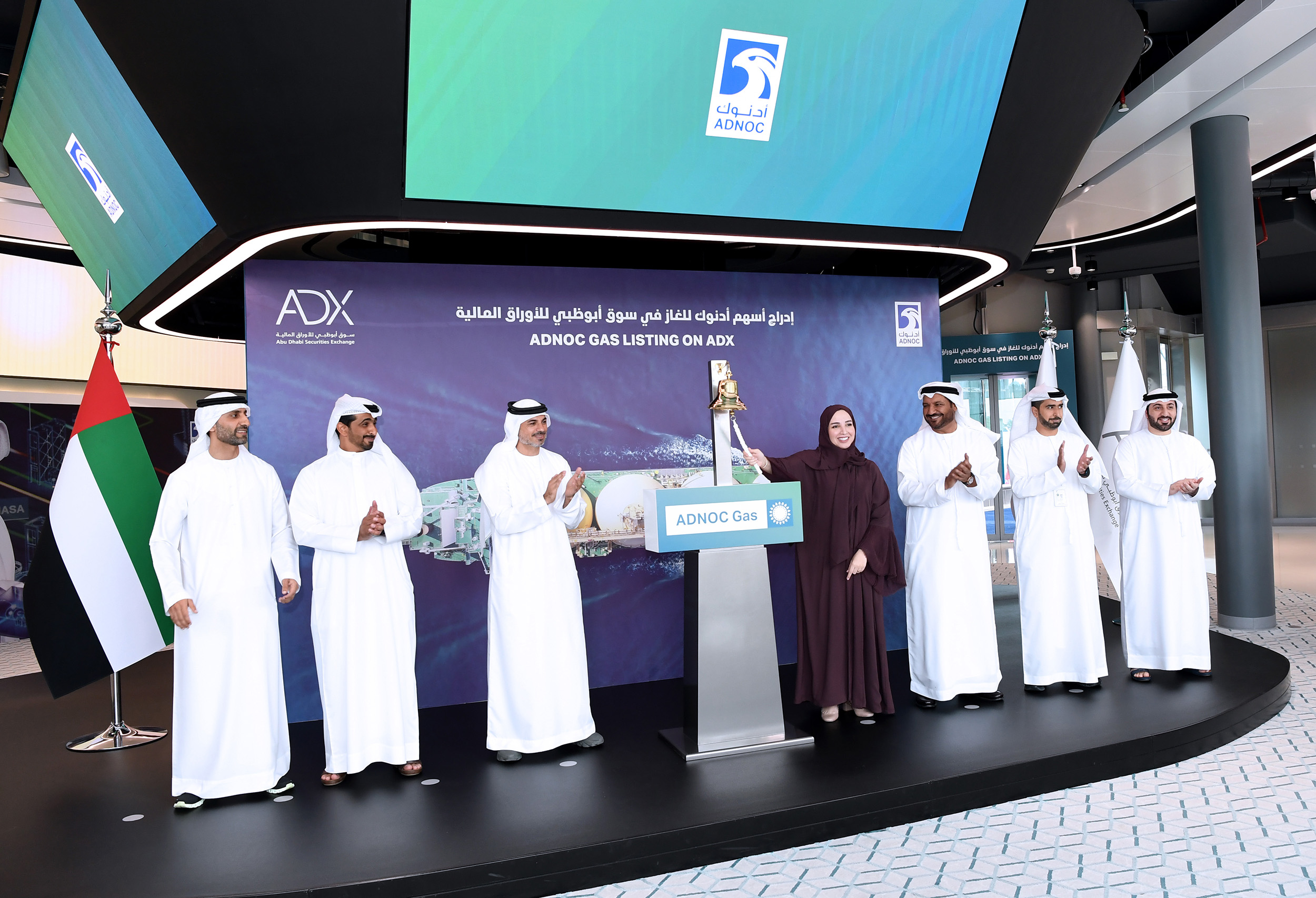 وشهد سهم "أدنوك للغاز" تداولات بقيمة 781.9 مليون درهم ليتصدر قائمة الأكثر نشاطاً في سوق أبوظبي بعد التداول على 276.2 مليون سهم من خلال 8921 صفقة منفذة، وأقفل السهم عند مستوى 2.81 درهم بارتفاع بنسبة 18.6% مقارنة بسعر الطرح النهائي البالغ 2.37 درهم.