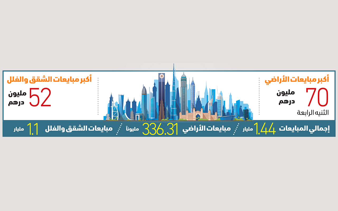 سجلت التصرفات العقارية في دبي أمس، 1.8 مليار درهم مع 548 مبايعة بقيمة 1.44 مليار درهم منها 47 مبايعة للأراضي بقيمة 336.31 مليون درهم، و501 مبايعة للشقق والفلل بقيمة 1.1 مليار درهم. وجاءت أهم مبايعات الأراضي بقيمة 70 مليون درهم في منطقة الثنيه الرابعة وجاءت مبايعة بقيمة 52 مليون درهم بمنطقة مرسى دبي كأهم مبايعات الشقق والفلل.