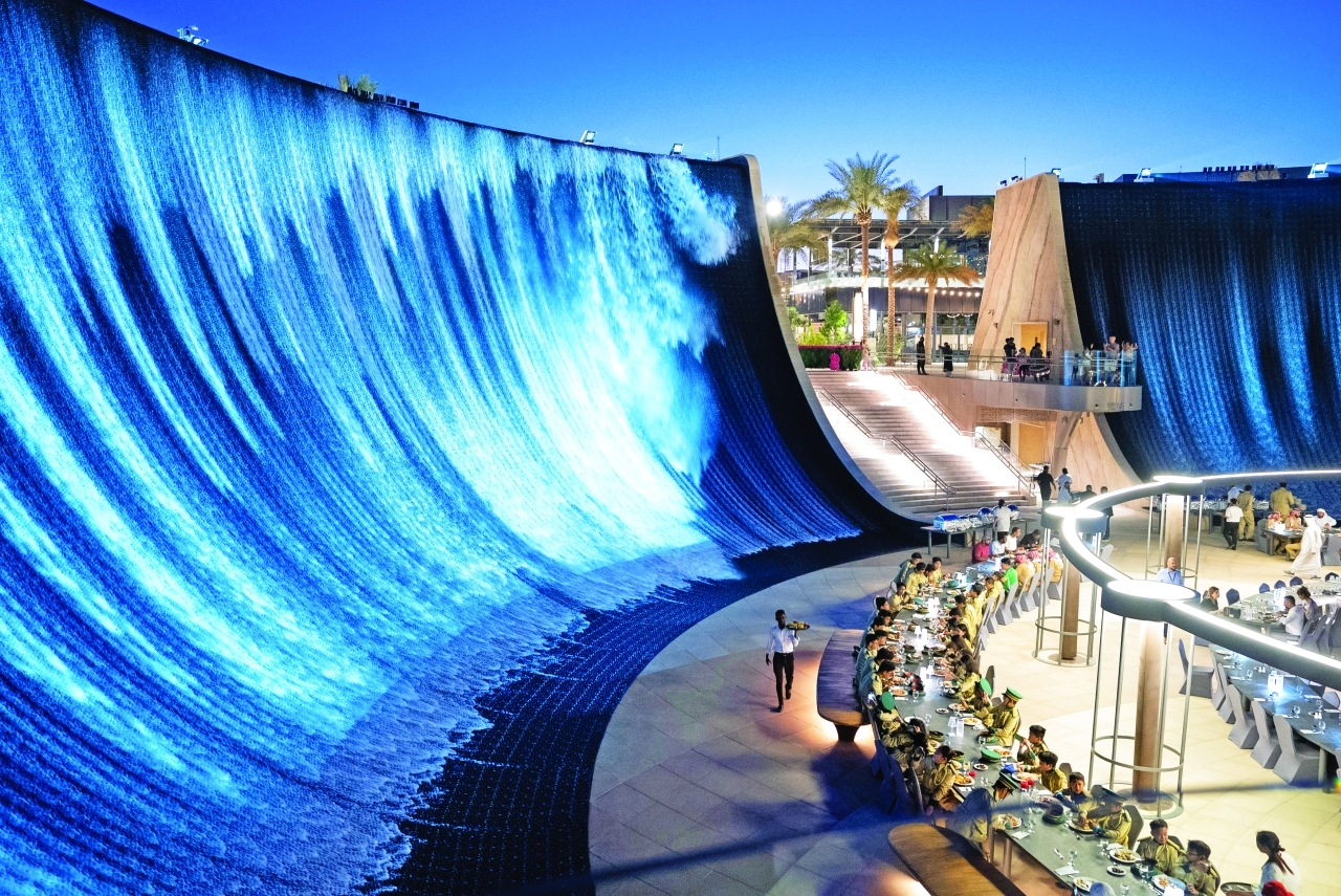 حيث تقدم مائدة إفطار شلالات إكسبو، التي يشرف عليها فندق العنوان «The Adress»، تجربة تناول طعام فريدة وسط الشلالات تتيح مشاهدة العرض المائي والضوئي الممتع.