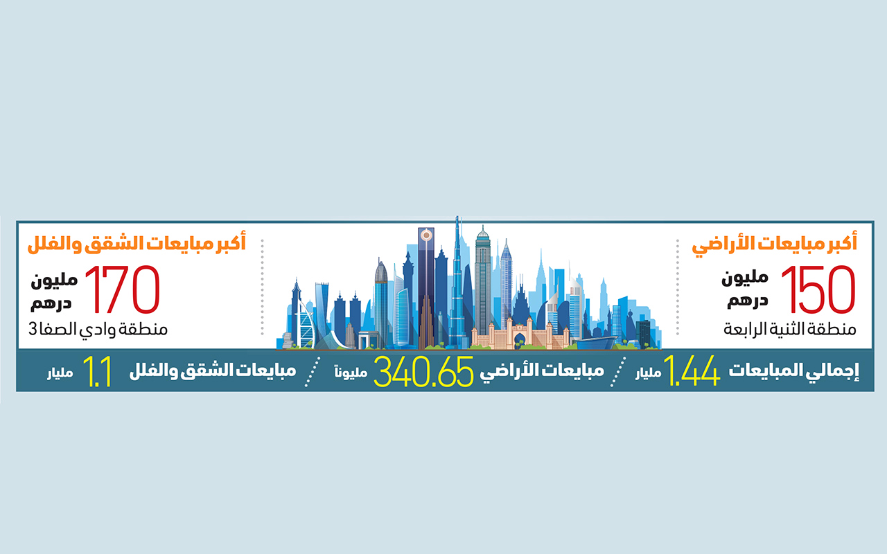 جاءت أهم مبايعات الأراضي بقيمة 150 مليون درهم في منطقة الثنية الرابعة.