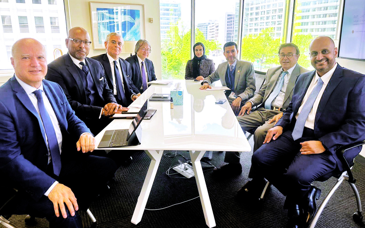 كما اجتمع معاليه مع الدكتور فريد بلحاج نائب رئيس مجموعة البنك الدولي لمنطقة الشرق الأوسط وشمال أفريقيا، بحضور كل من أكيهيكو نيشيو نائب رئيس تمويل التنمية في البنك الدولي، وإيثيوبيس تافارا، نائب الرئيس ورئيس خبراء إدارة المخاطر والشؤون القانونية والإدارية في الوكالة الدولية لضمان استثمار (MIGA) التابعة لمجموعة البنك الدولي، وناقش الاجتماع أطر تعزيز التعاون في مجال تمويل العمل المناخي، كما استعرض الدكتور بلحاج برامج البنك الدولي لتحسين المهارات وبناء القدرات.
