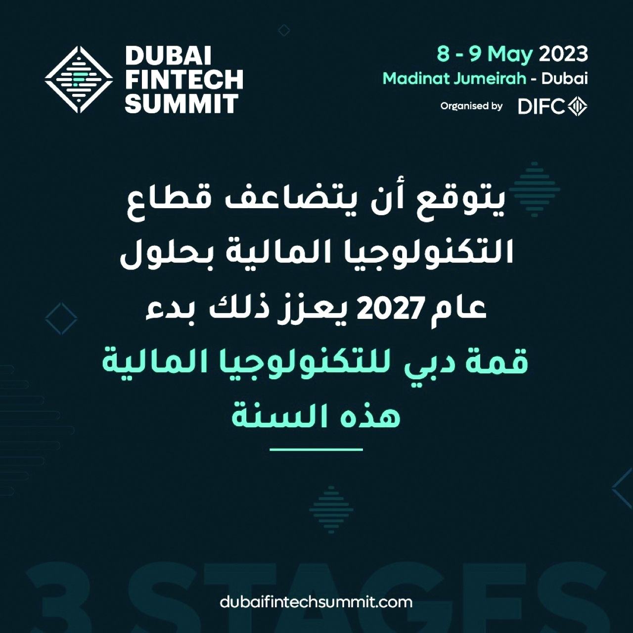تحت رعاية سمو الشيخ مكتوم بن محمد بن راشد آل مكتوم النائب الأوّل لحاكم دبي نائب، رئيس مجلس الوزراء، وزير المالية، تنعقد «قمة دبي للتكنولوجيا المالية»، الأكبر من نوعها على مستوى المنطقة، يومي 8 و9 مايو في مدينة جميرا بدبي لاستشراف فرص التكنولوجيا المالية، وحلولها المبتكرة في تصميم اقتصادات المستقبل المرنة.