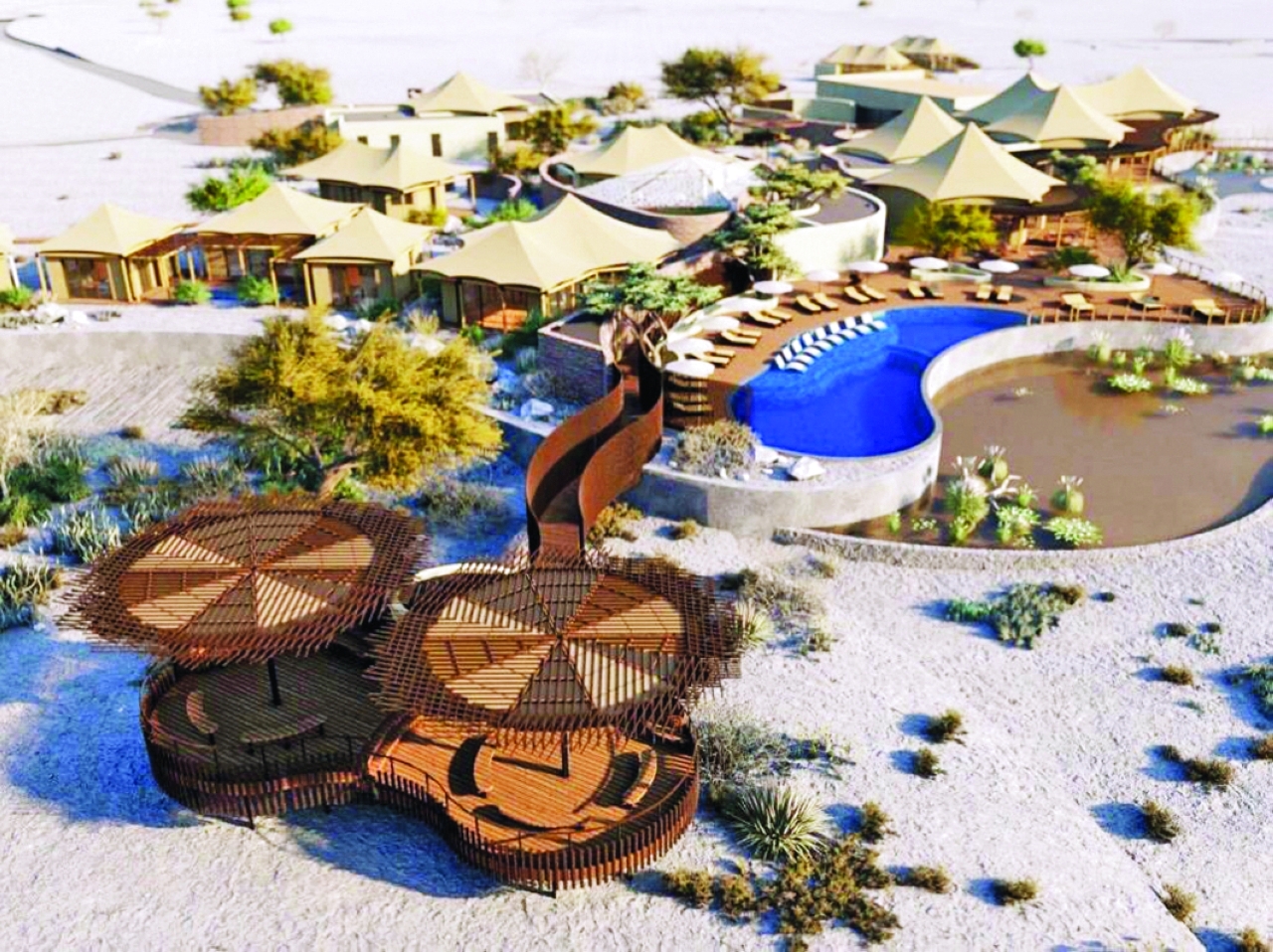 وسيضم منتجع الجبل لوكس 45 وحدة فندقية في خورفكان المطلة بجبالها المرتفعة على خليج عُمان. ويندمج المنتجع الفاخر مع محيطه من خلال تصاميمه المستوحاة من المناظر الطبيعية والعمارة المحلية، ويمتد على مساحة 18.7 هكتاراً فوق أرض بشكل هلال.