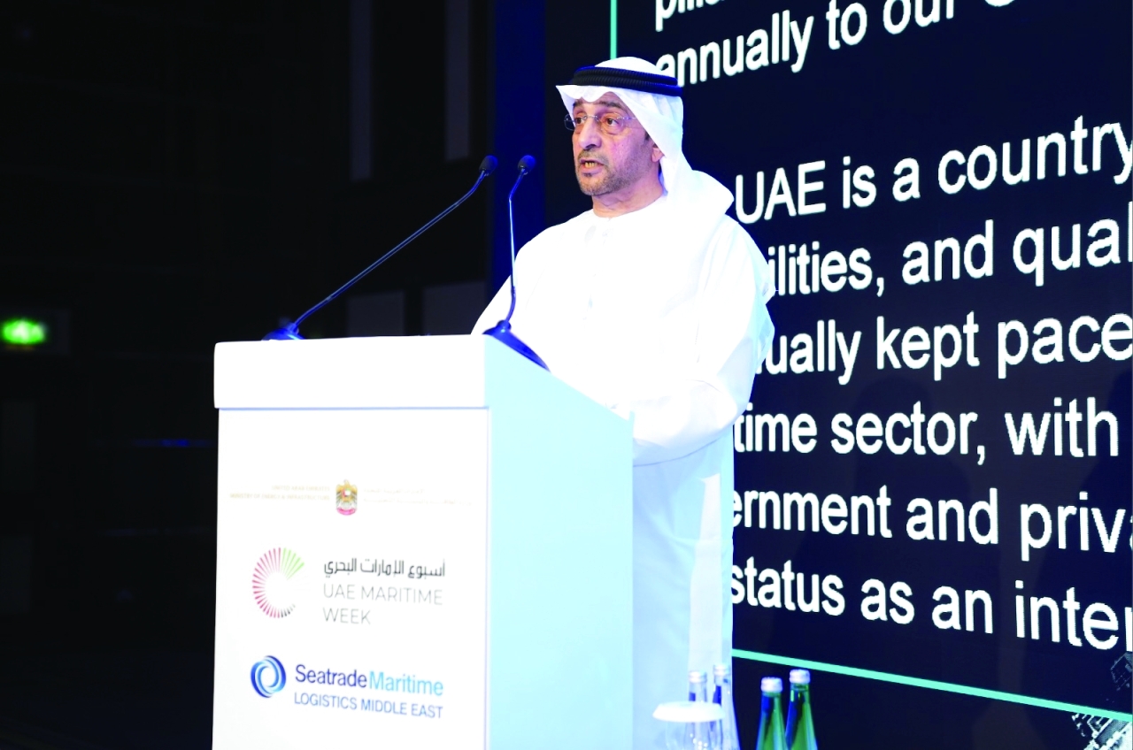 خلال كلمته الافتتاحية، أكد المهندس حسن محمد جمعة المنصوري، وكيل وزارة الطاقة والبنية التحتية لشؤون البنية التحتية والنقل، أن الإمارات توفر بيئة محفزة للأعمال البحرية وجذب الاستثمارات، مستعرضاً ملامح رؤية الإمارات وخطتها الاستراتيجية لتطوير القطاع البحري والخدمات اللوجستية.