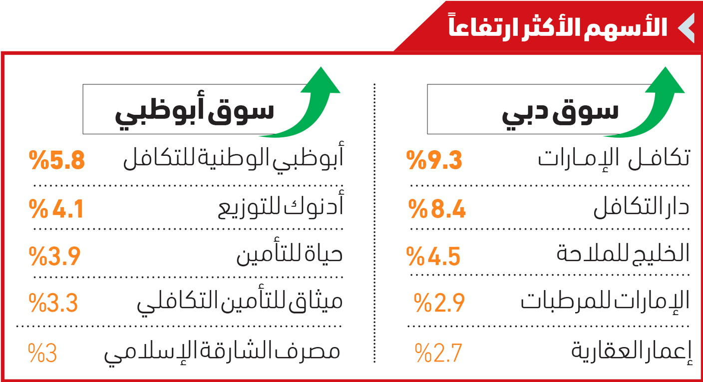 حققت أسواق الأسهم المحلية مكاسب 20 مليار درهم في ختام تعاملات أمس، ونجح سوق دبي في الصعود لأعلى مستوياته في 3 أسابيع منذ جلسة 11 مايو الجاري، بمكاسب قاربت 4.9 مليارات درهم، فيما حقق سوق أبوظبي أكبر وتيرة صعود يومية في أكثر من شهر.