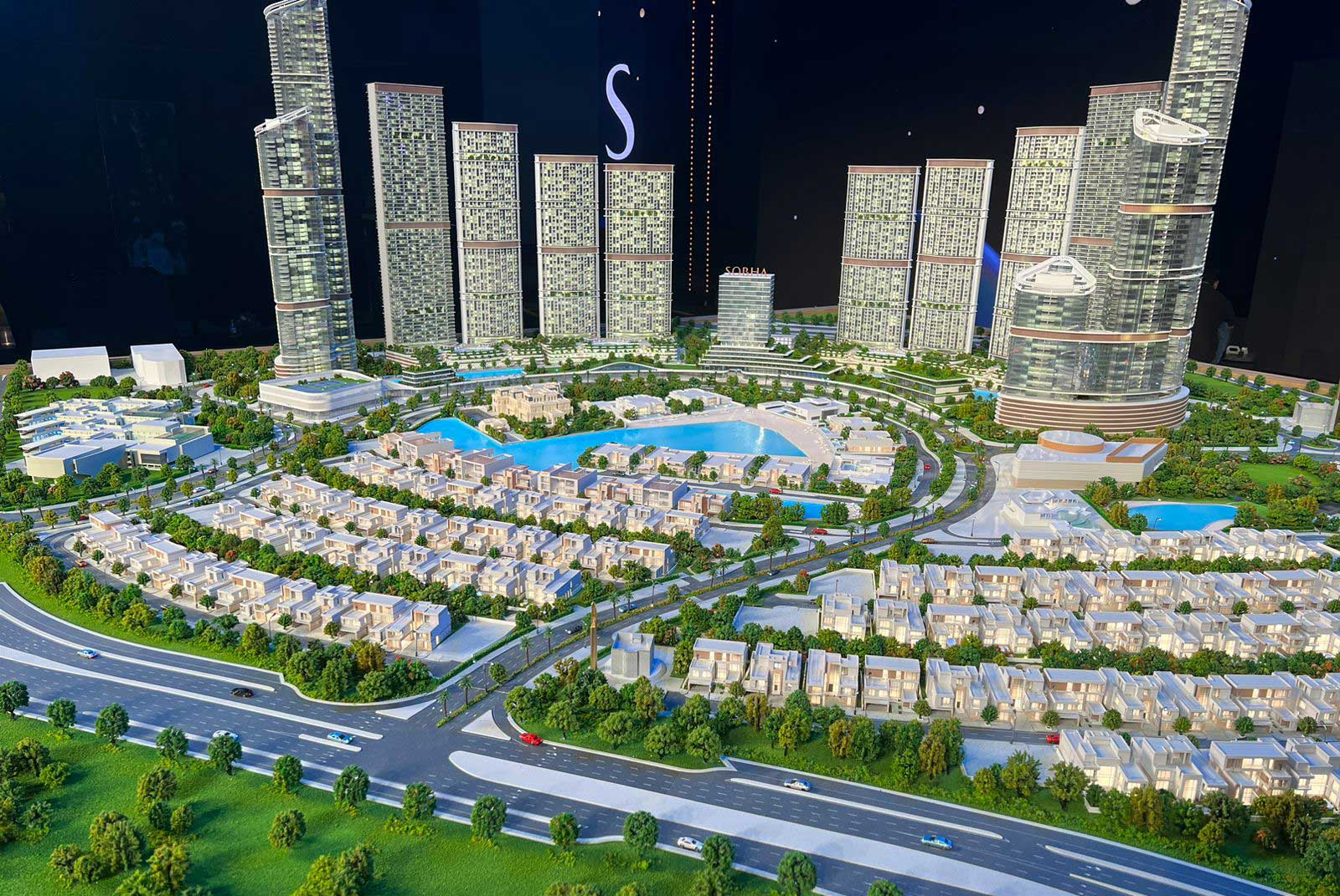 وتبلغ مساحة المشروع 8 ملايين قدم مربعة مع بحيرات ومساحات خضراء، ويتضمن فللاً بخمس وست غرف نوم، إضافة إلى 13 برجاً يتضمن شققاً سكنية تتراوح بين غرفة نوم واحدة وأربع غرف نوم.