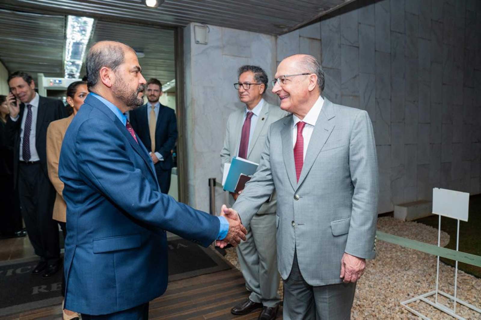والتقى محمد المعلم، نائب الرئيس التنفيذي للمشاريع الدولية بمجموعة موانئ دبي العالمية، جيرالدو ألكمين، نائب الرئيس البرازيلي، في العاصمة برازيليا هذا الأسبوع، لمناقشة التعاون والاستثمارات التي تخطط لها مجموعة موانئ دبي العالمية في ميناء سانتوس.