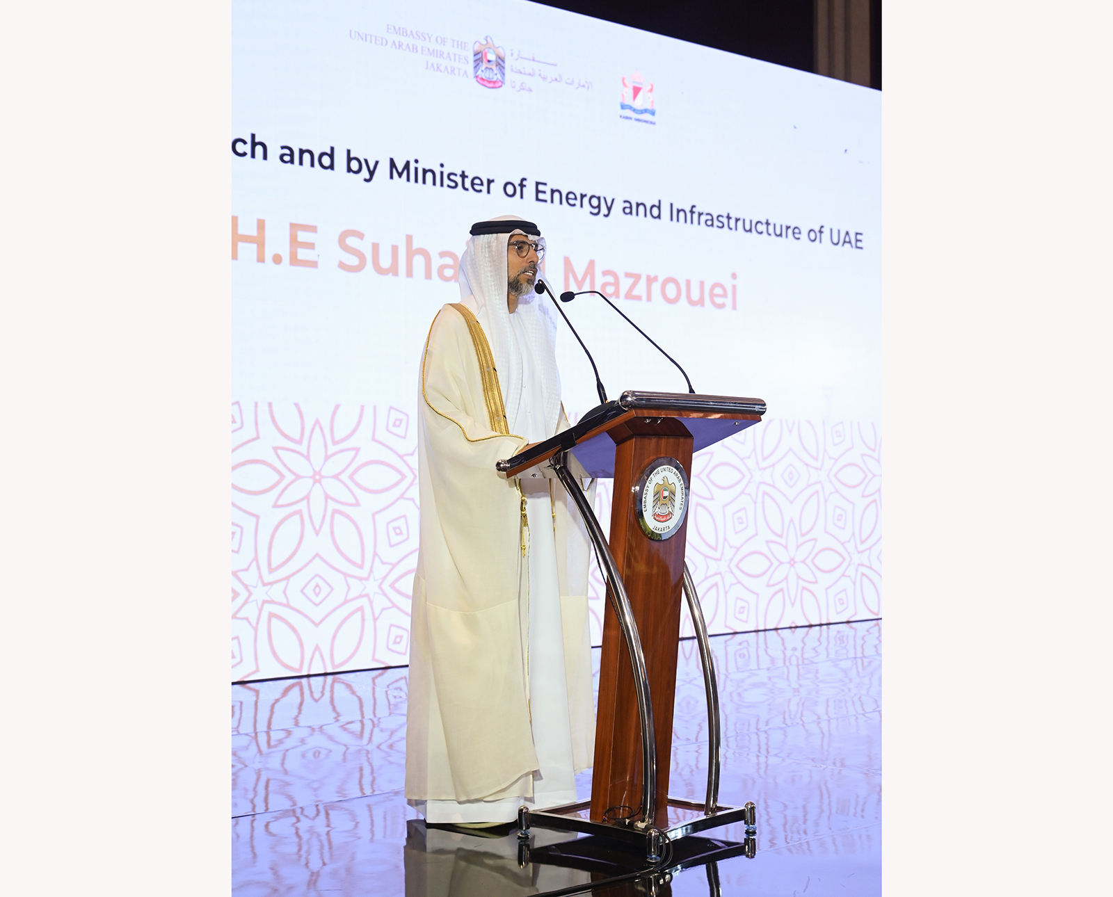 وهنأ معاليه البلدين الصديقين على نجاح شركة مصدر وشركة مرافق الكهرباء "بي تي بي جاوا بالي" في إكمال مشروع محطة شيراتا للطاقة الشمسية الكهروضوئية العائمة، بمنطقة Cirata بإقليم جاوا الغربية الإندونيسي والتي تعد أكبر محطة طاقة شمسية عائمة في العالم، مشيرا إلى رغبة الشركات الإماراتية الدخول في المزيد من الشراكات الاستثمارية في قطاع الطاقة المتجددة في إندونيسيا التي قال انها تمتلك القدرات والإمكانيات لتصبح مركز الطاقة الخضراء في منطقة جنوب شرق آسيا.